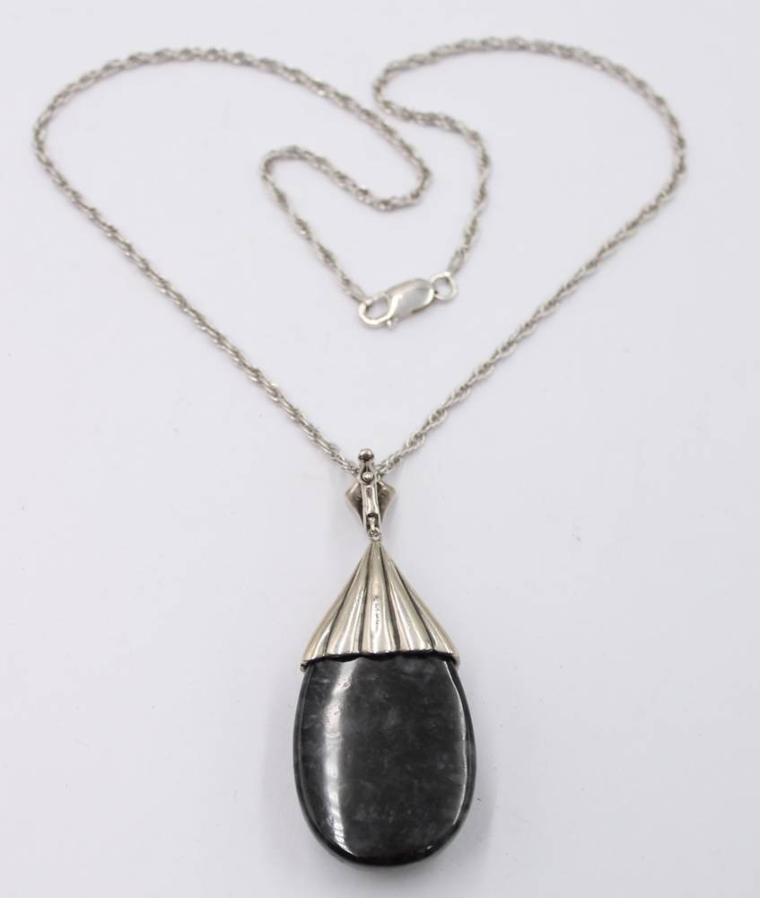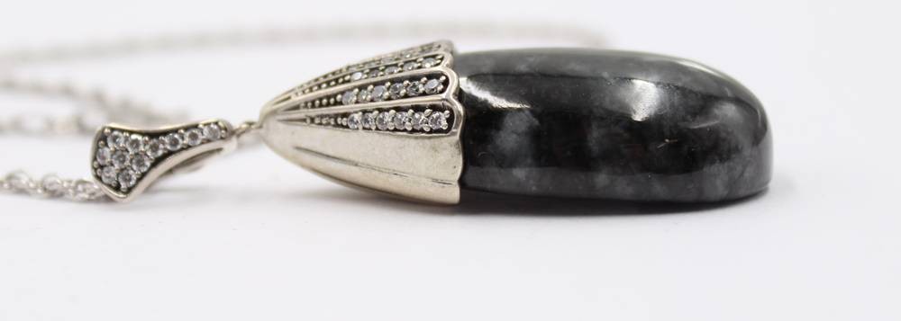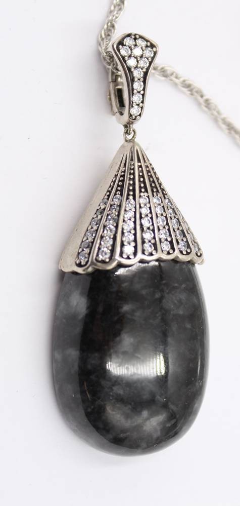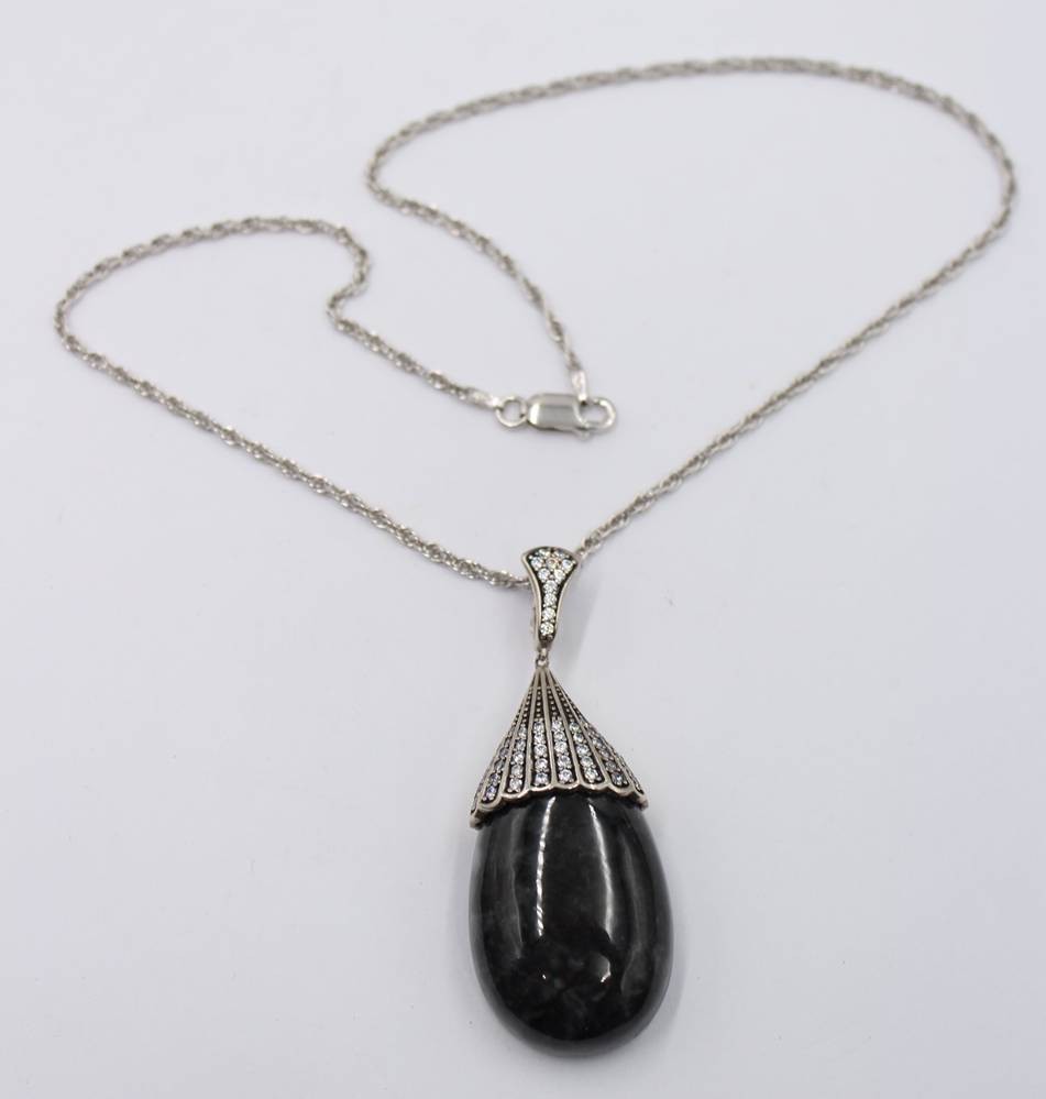 gr. Anhänger in 925er Fassung an 925er Halskette, Fassung besetzt mit klaren Steinen, ca. L-44cm, Anh. L-6,5cm [1]
