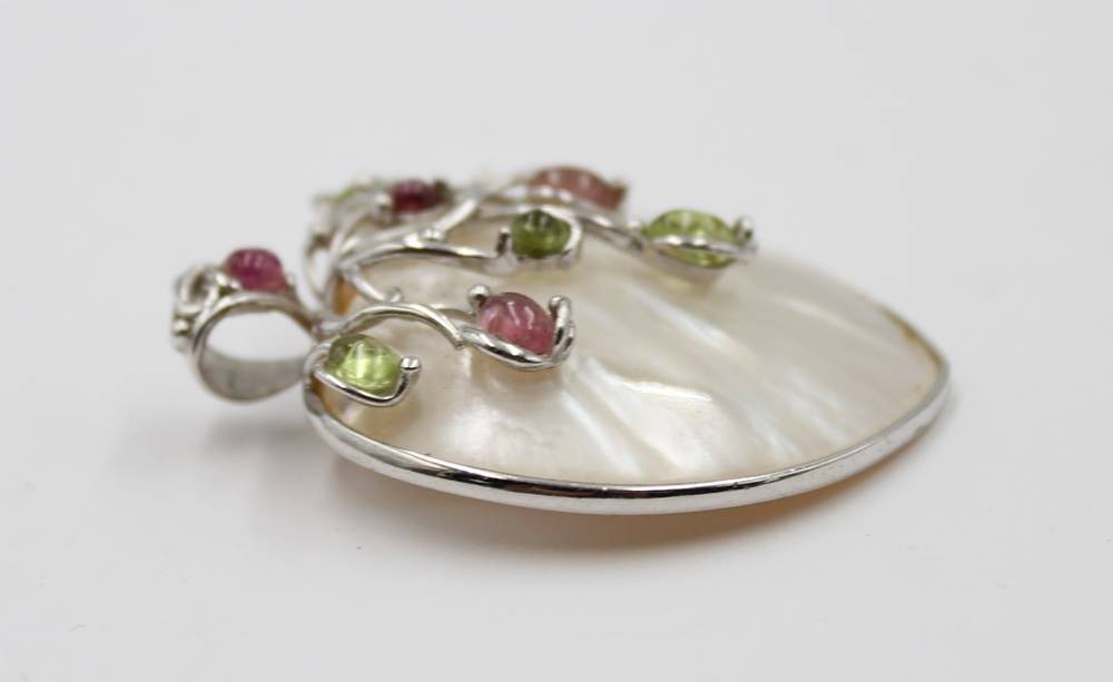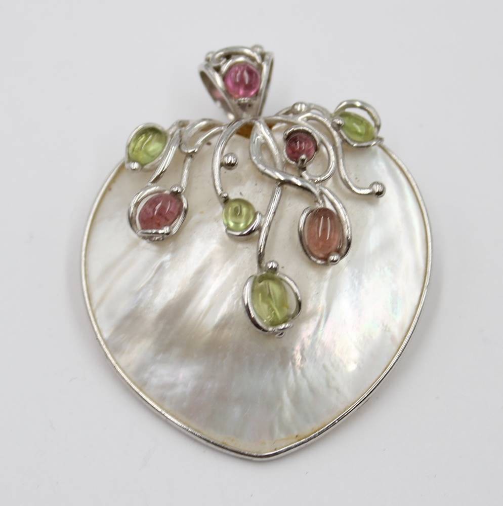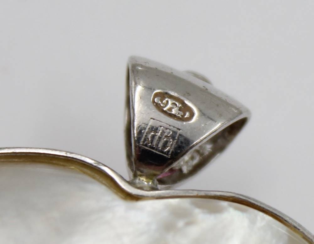 gr. Anhänger, Perlmutt mit 925er Silberfassung, diese mit Halbedelsteinbesatz [1]
