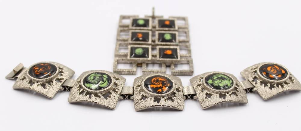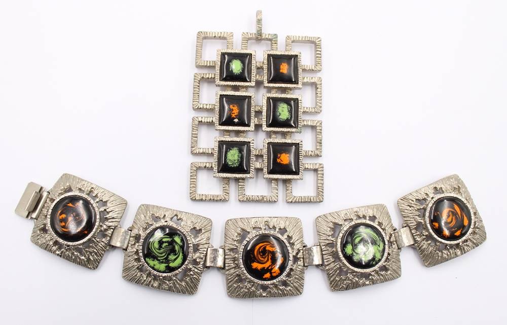 gr. Anhänger und Armband, 60/70er Jahre, emailliert, Anh. L-8,5cm, Armband L-19,5cm [1]