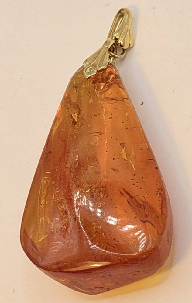 gr. Bernstein-Anhänger mit Silbermontur-835-, vergoldet, H-6 cm, 8 gr [1]