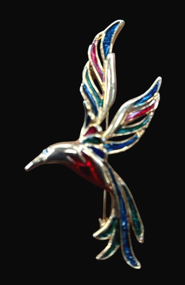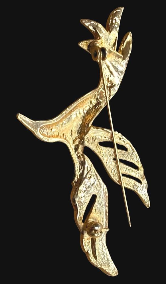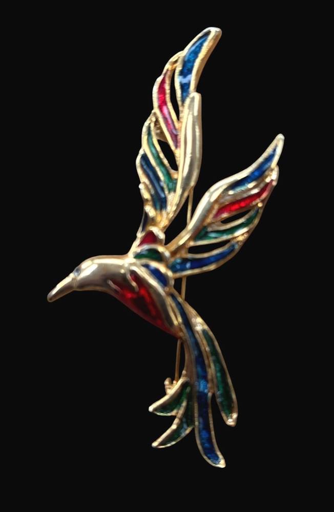 gr. Brosche, fliegender Vogel, goldfarben und emailliert, H-8 cm [1]