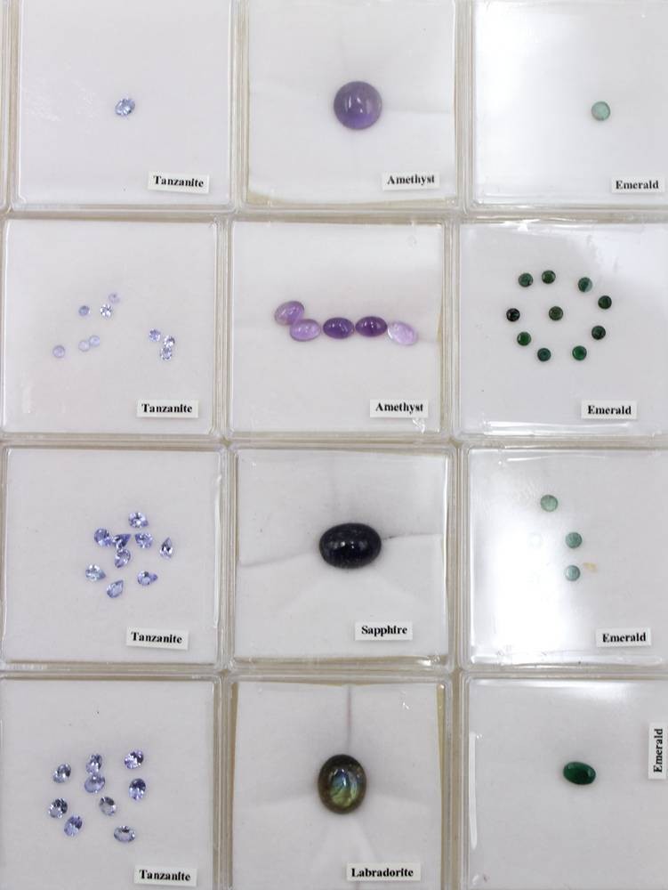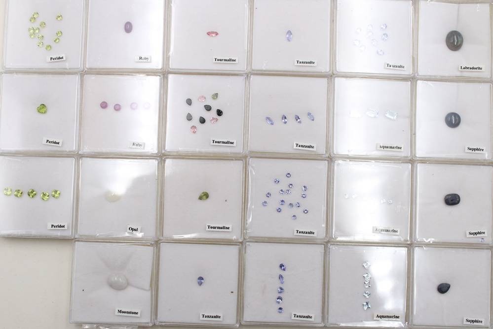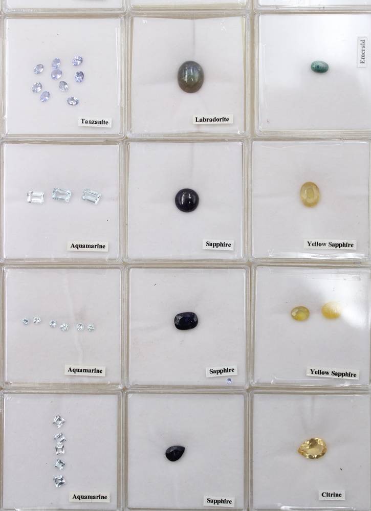 gr. Konvolut div. Schmucksteine in 48 Boxen, u.a. Saphire, Granat, Aquamarin etc. [1]