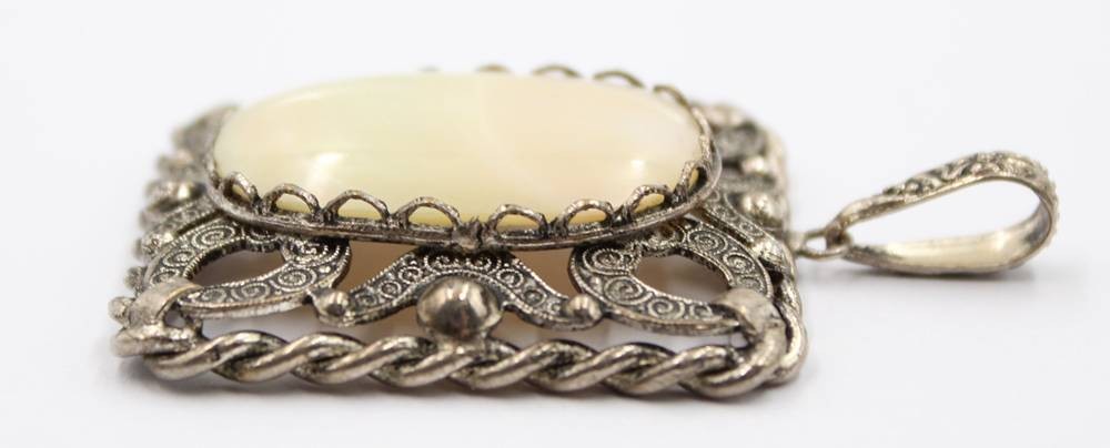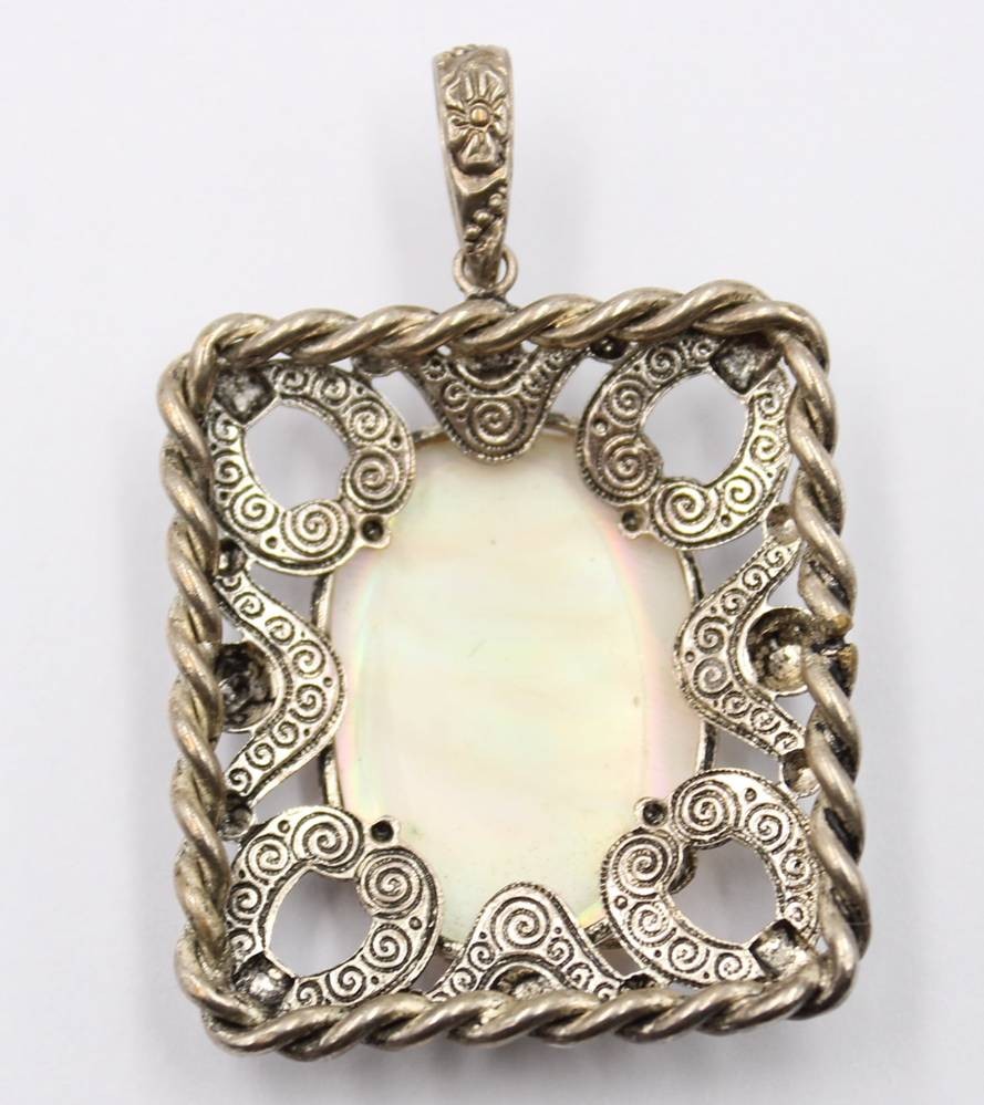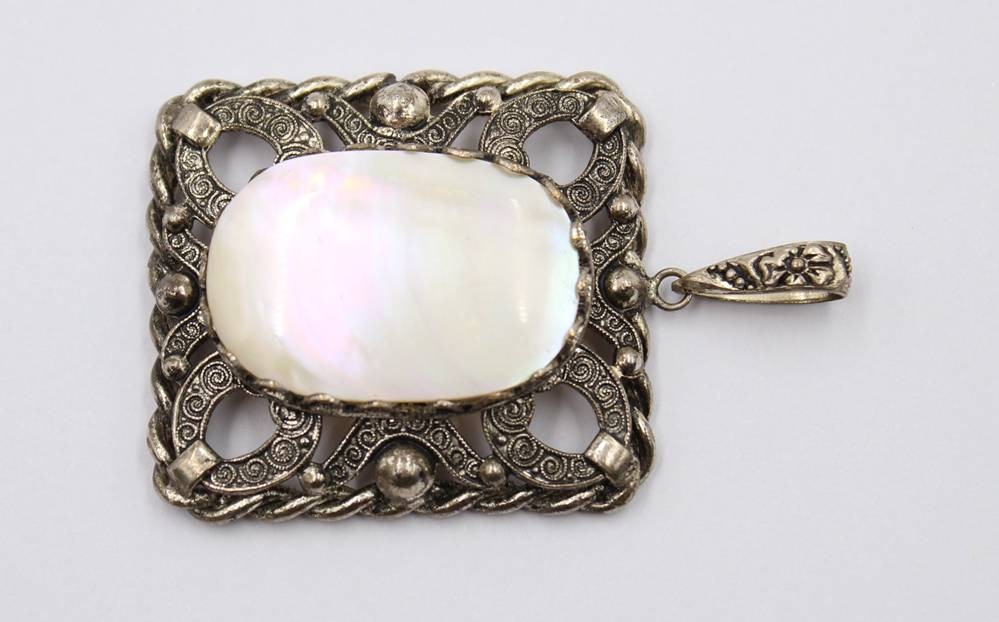 gr. Modeschmuckanhänger mit Perlmutt, versilbert, ca. L-5cm