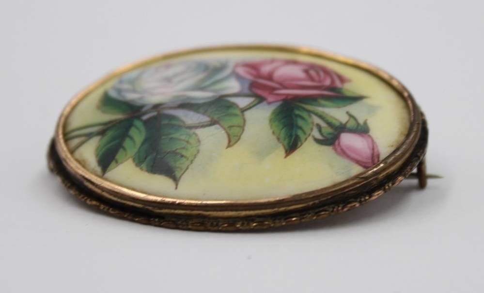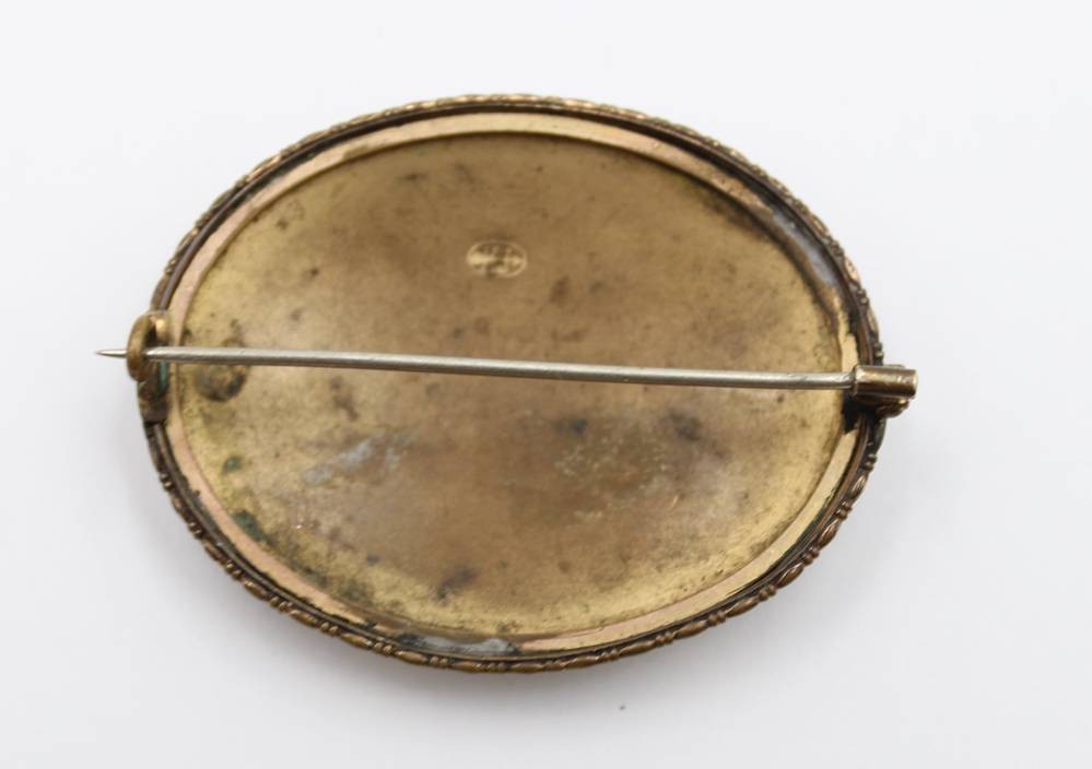 gr. ovale Porzellanbrosche, Messingfassung, wohl um 1920, ca. 5 x 4cm [1]