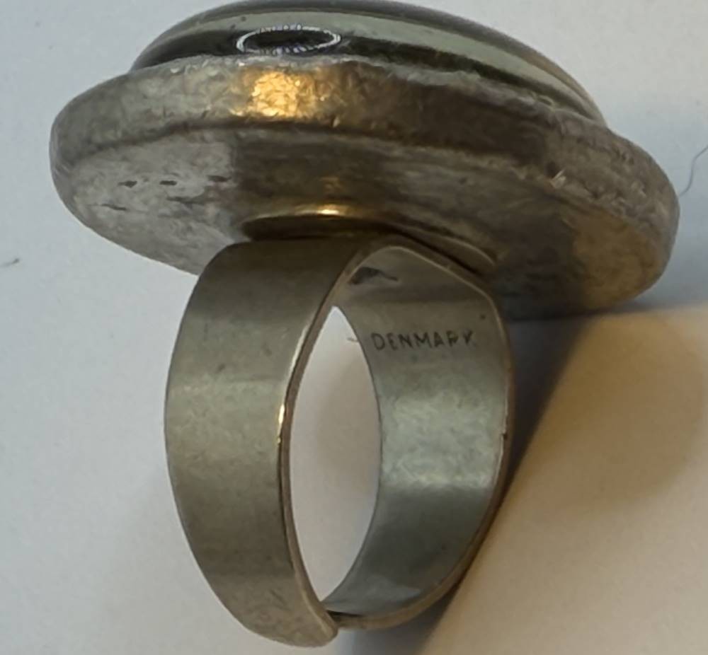 gr. runder Zinnring, nur "Denmark" gestempelt,klarer Stein, D-2,2 cm, 21,6 gr., Handarbeit, D-3 cm, 24,8 gr., Handarbeit [1]