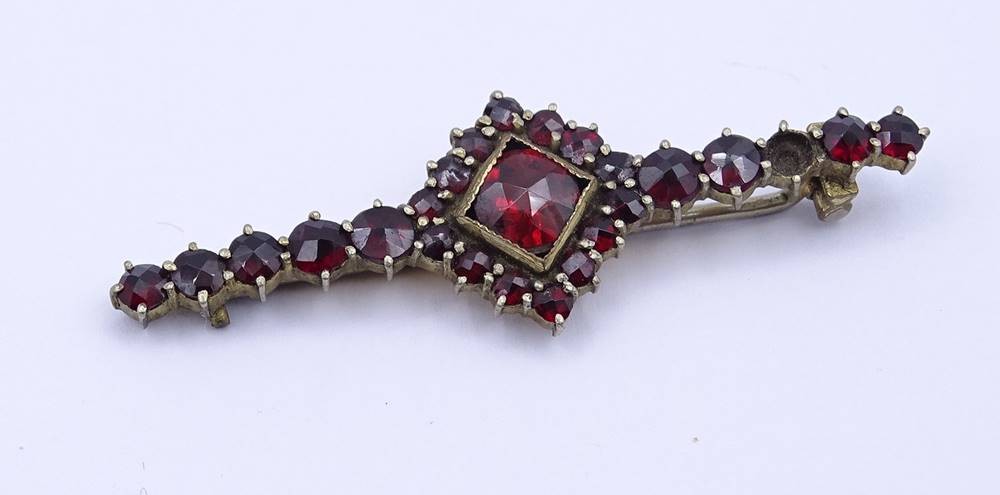 Granat Brosche, Metall, Befestigungsstück fehlt, L. 4,5cm