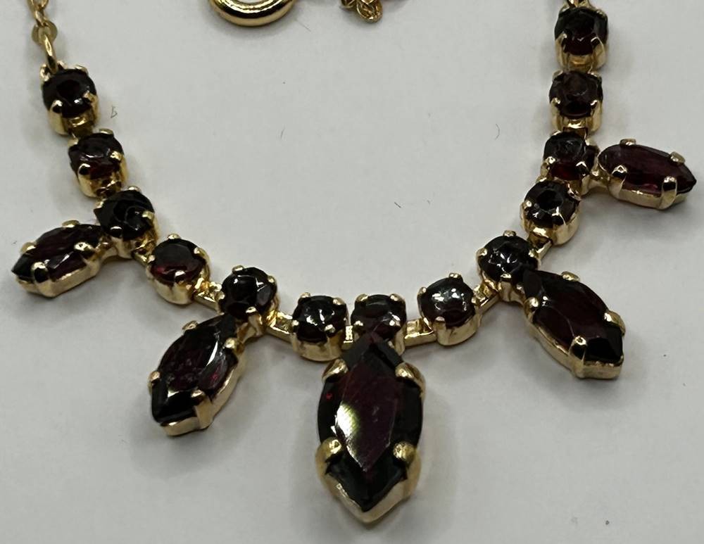 Granat Collier, Normgold,sog.Viertelgold 250/1000, ungetragene Lagerware, L-ca. 42 cm, 4,5 gr. [1]