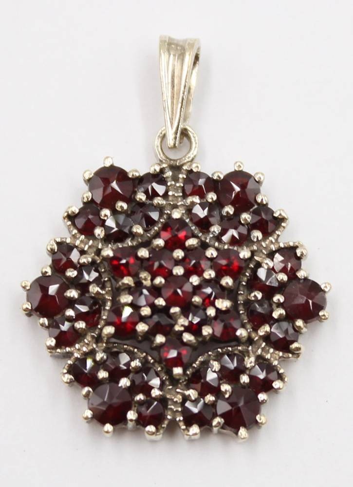 Granatanhänger, Silberfassung (gepr.), 4gr., ca. D-2cm