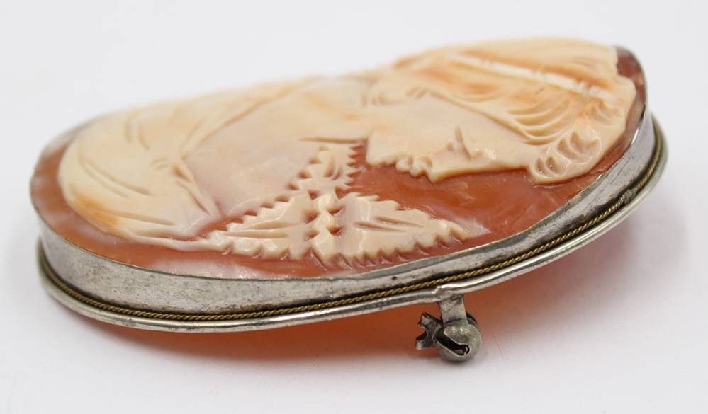Grosse Camee Brosche bzw. Anhänger, Silberfassung -800-, ca. 5,6x 4 cm, 11,5 gr [1]