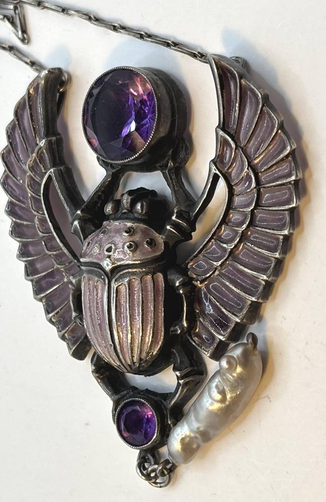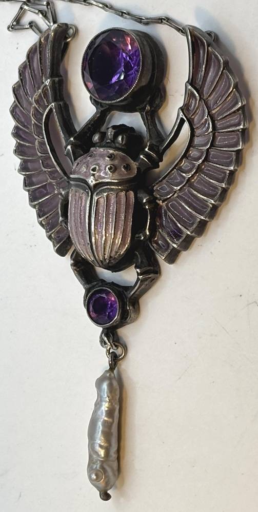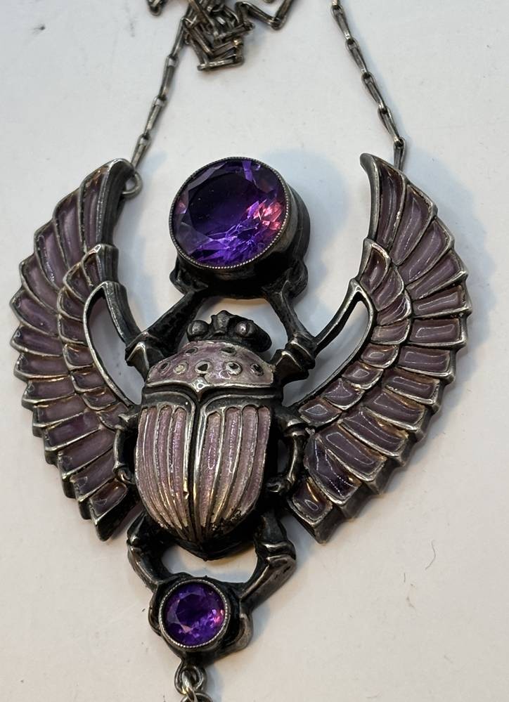 grosser Anhänger, Silber-800- mit lila Steinen, Käfer mit Flügel? an Silberkette, zus. 23,7 gr [1]