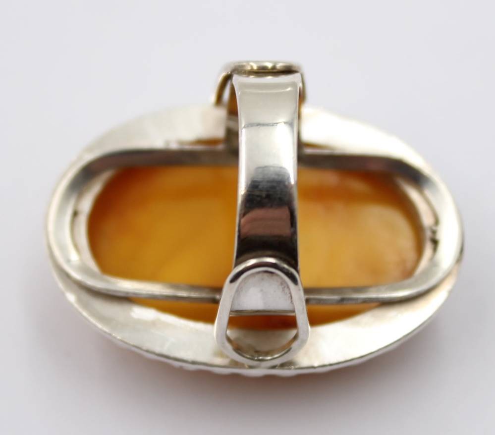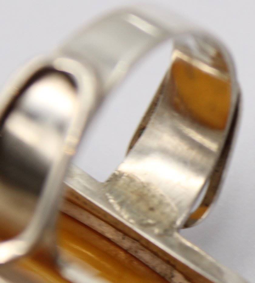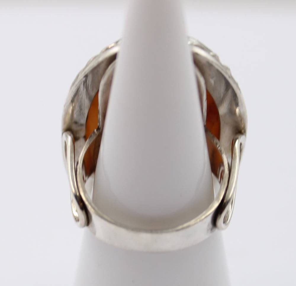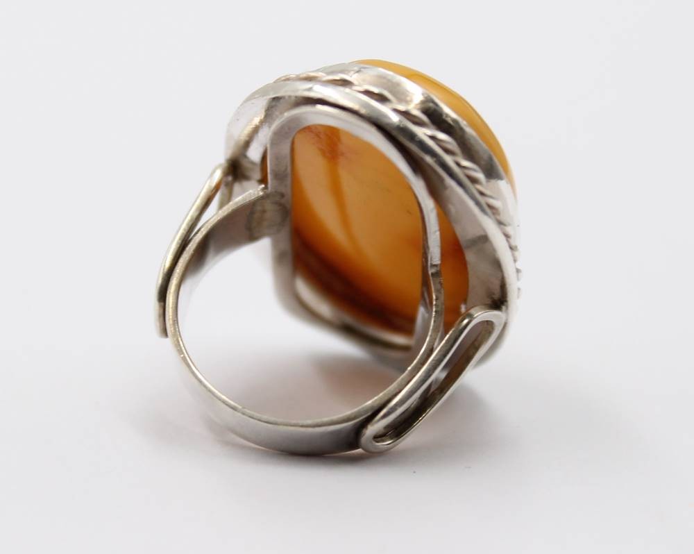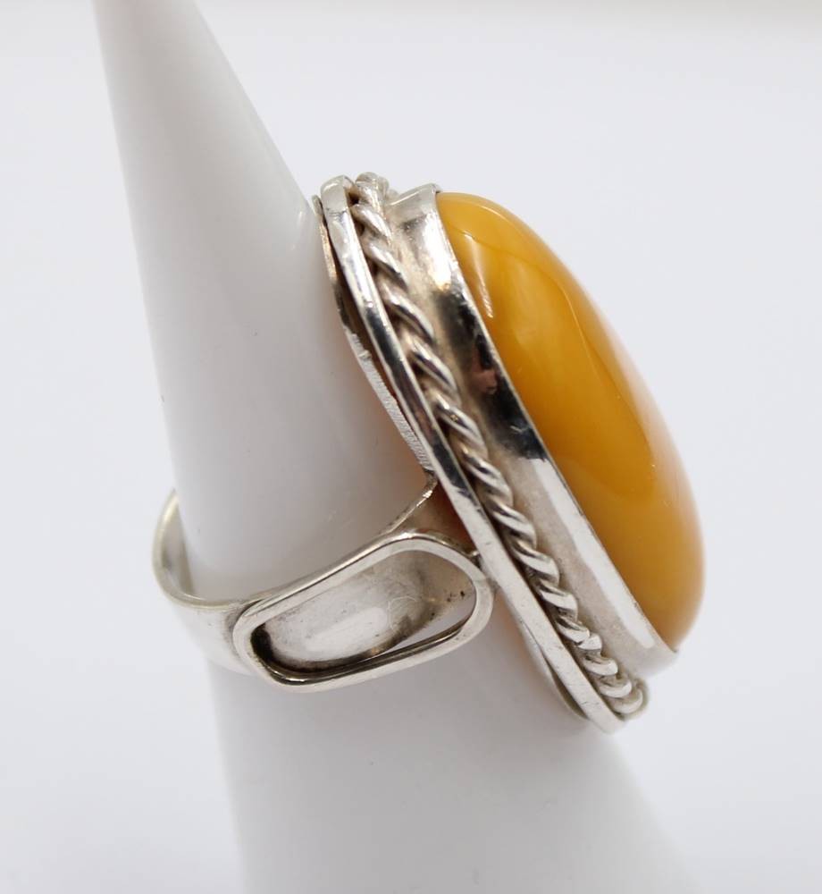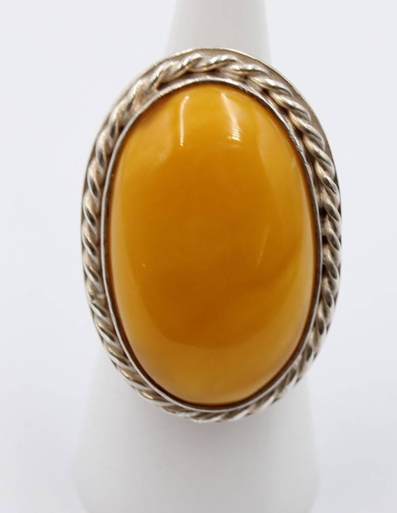Großer Silberring mit einem gelben Bernstein, Silber getestet, 14 gr. RG 53 [1]