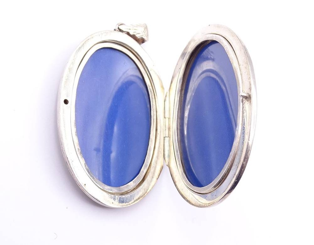 Großes Fotomedaillon, Silber (gepr.), L. 5,4cm (ohne Öse gemessen), 24g. [1]