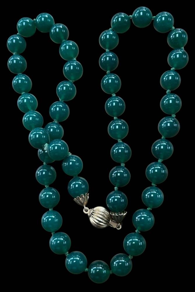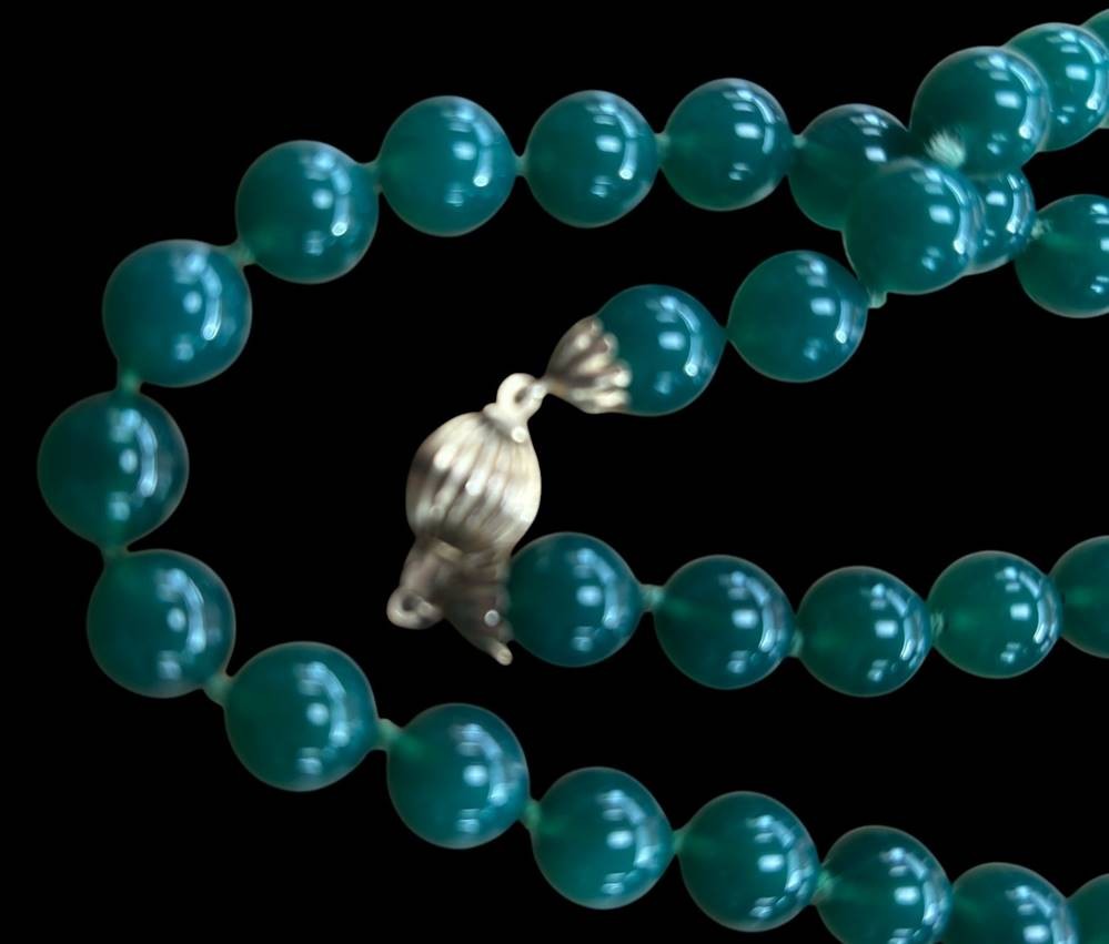 grüne Stein-Halskette, wohl Aventurin, L-ca. 54 cm, Double-Schliesse, Kugeln D-10 mm [1]
