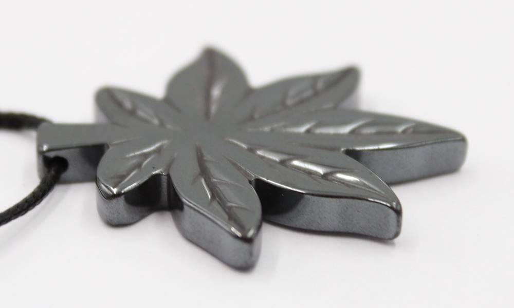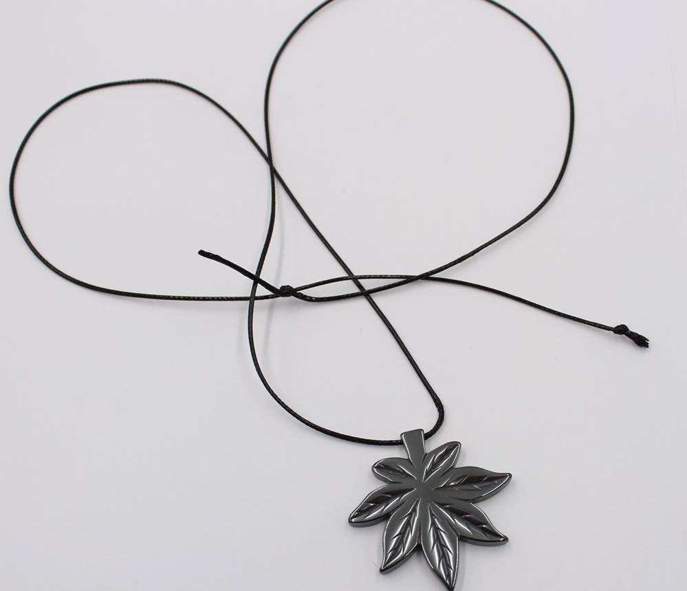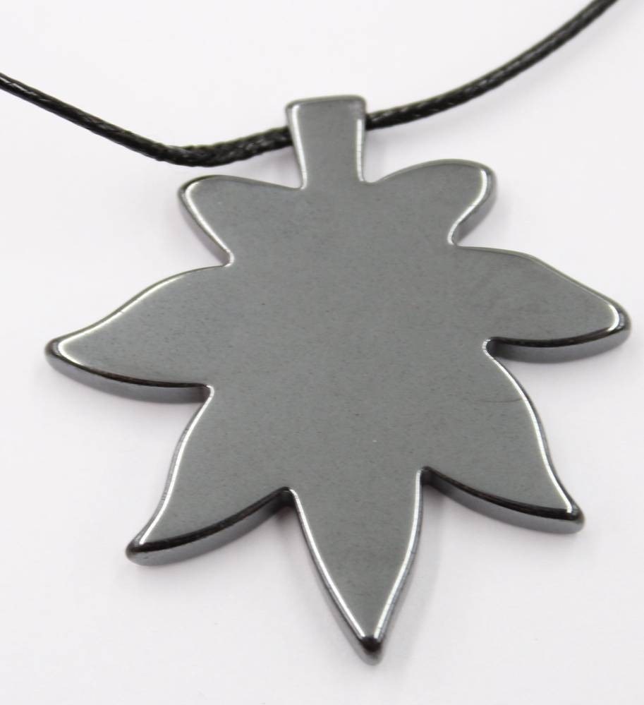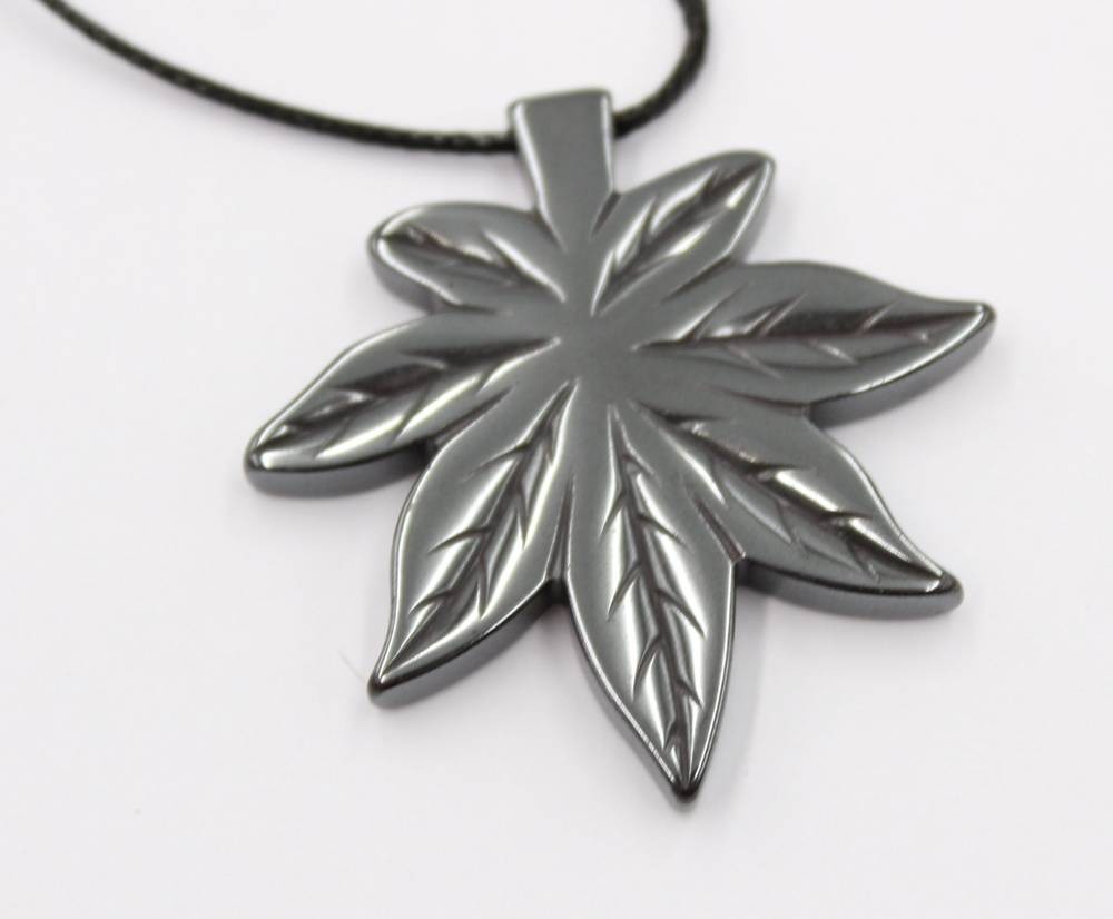 Hämatit-Anhänger in floraler Form, an Lederband, Anh. ca. 4 x 4cm [1]