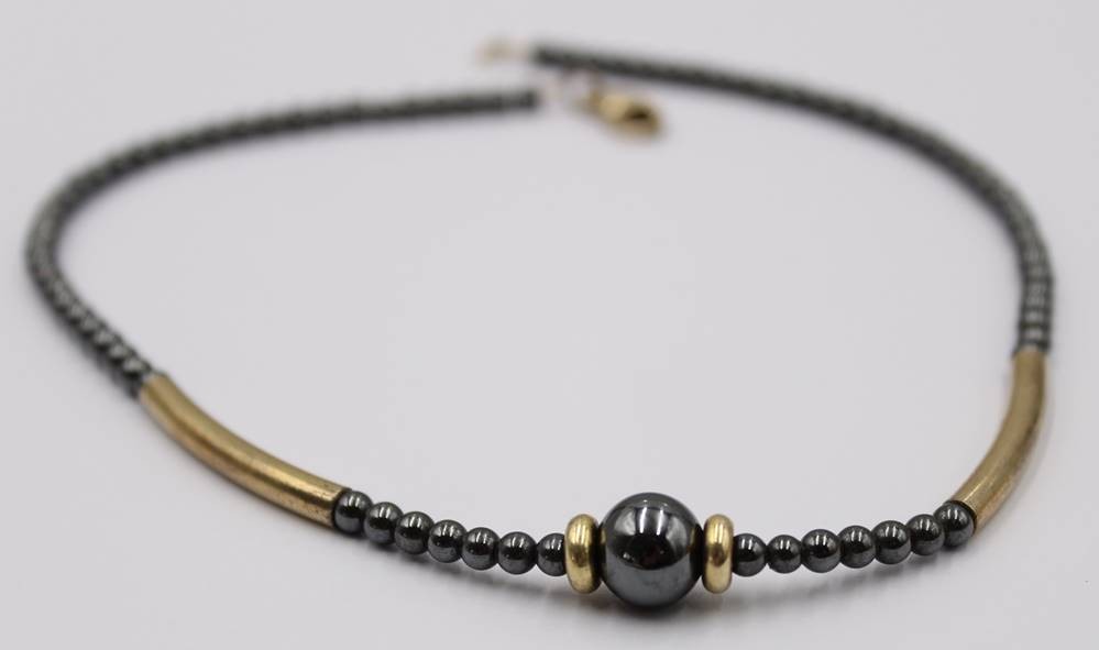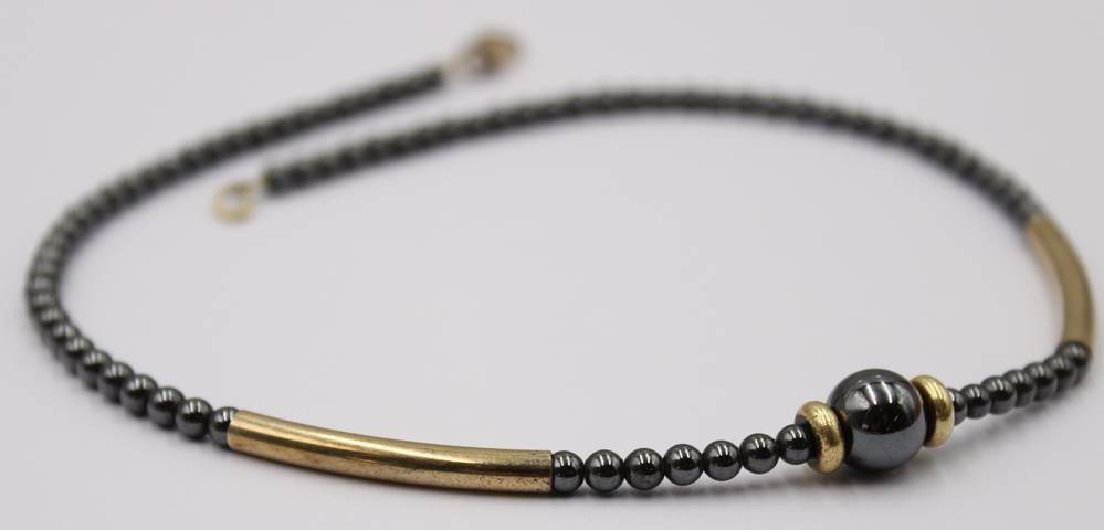 Hämatit Kugelkette mit 925er Silber Elemente, L. 39cm, 18 Gramm [1]