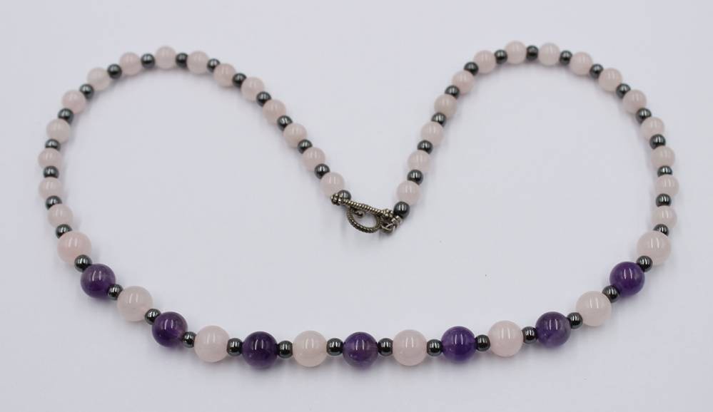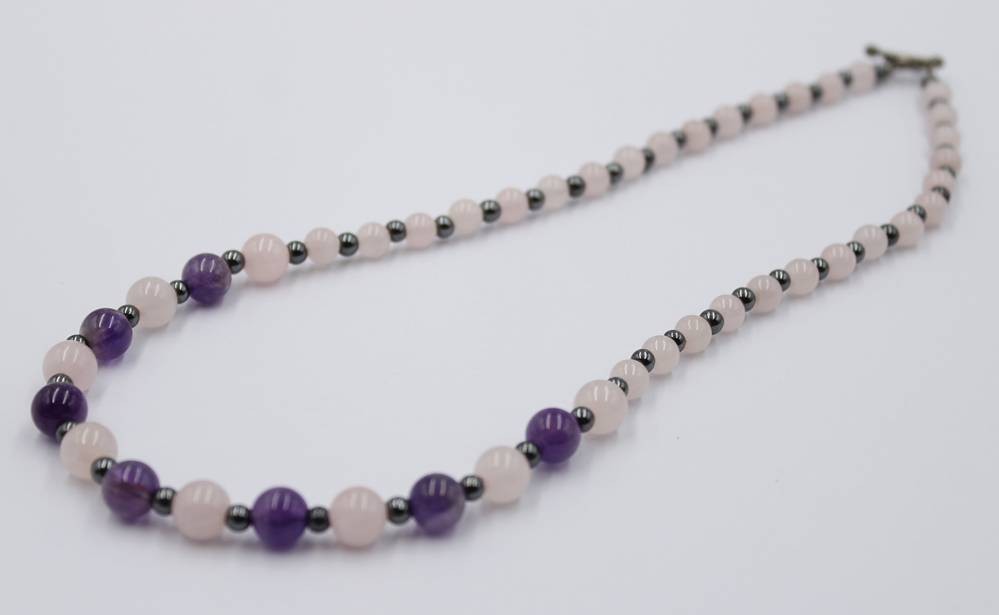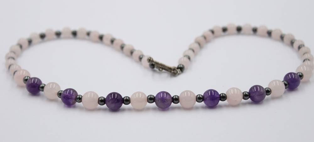 Halskette, Amethyst, Rosenquarz und Hämatit, ca. L-46cm [1]