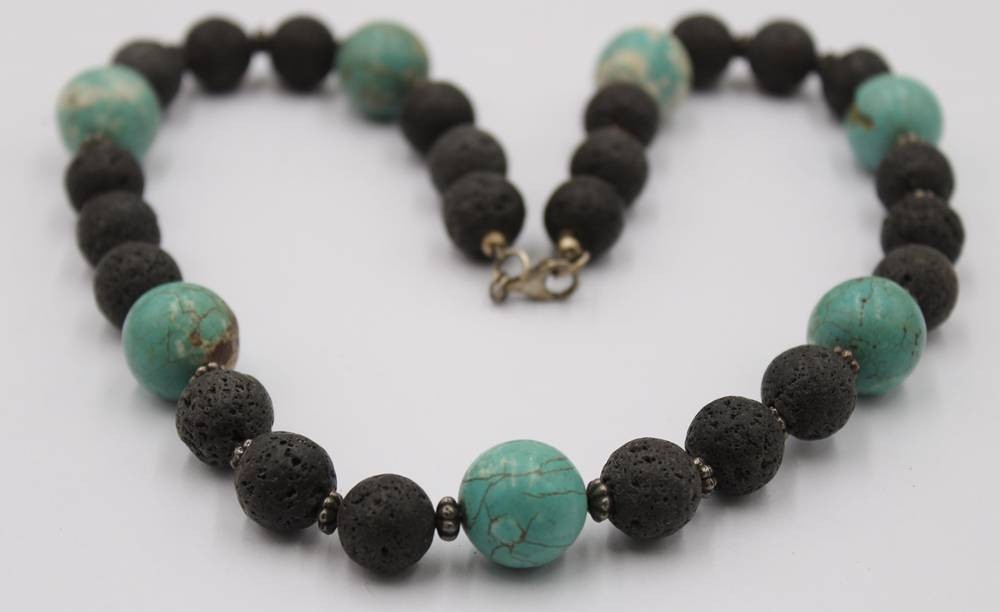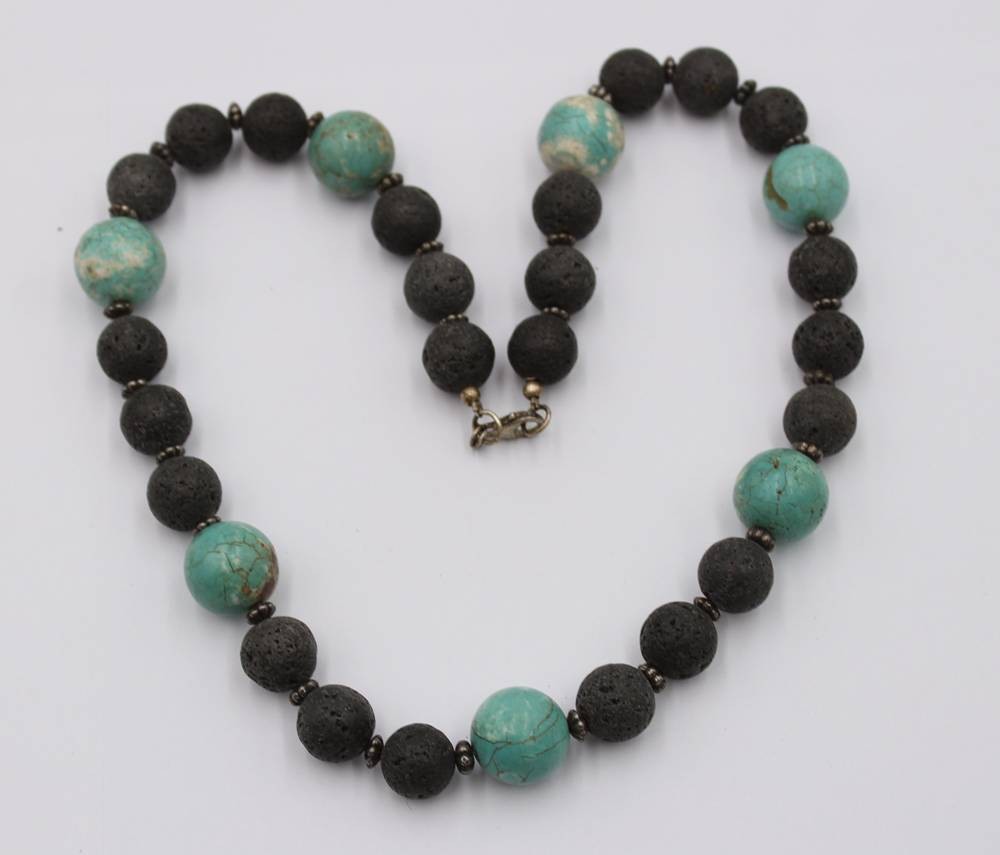 Halskette aus Lavaperlen und Türkis-Howlith, ca. L-58cm [1]