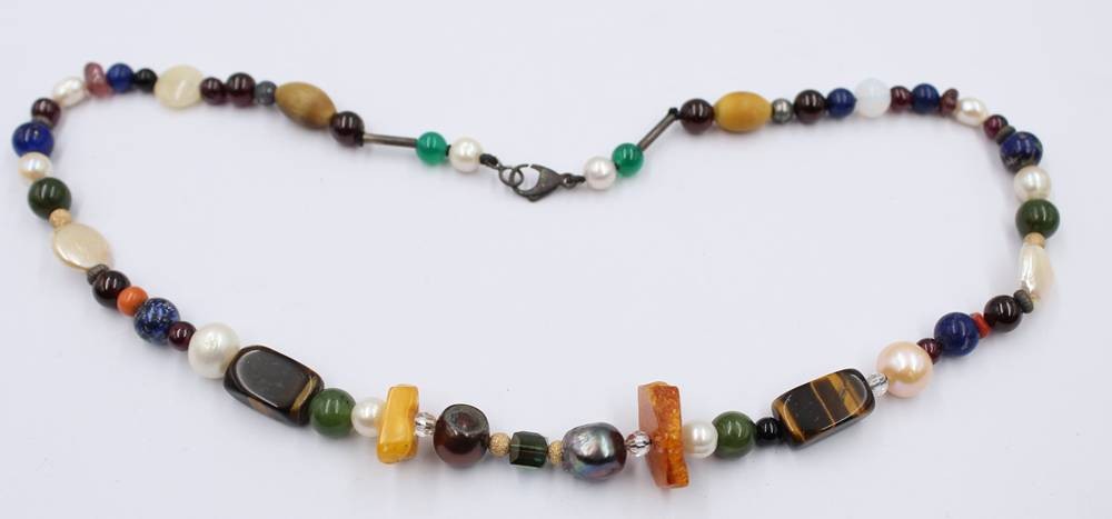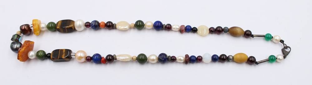 Halskette, div. Halbedelsteine u. Perlen, ca. L-44cm [1]