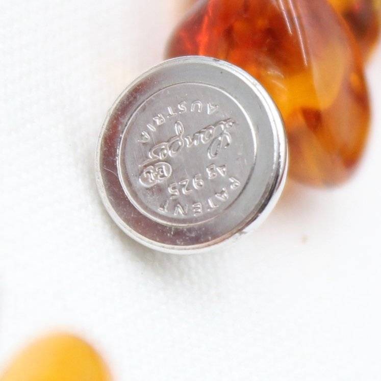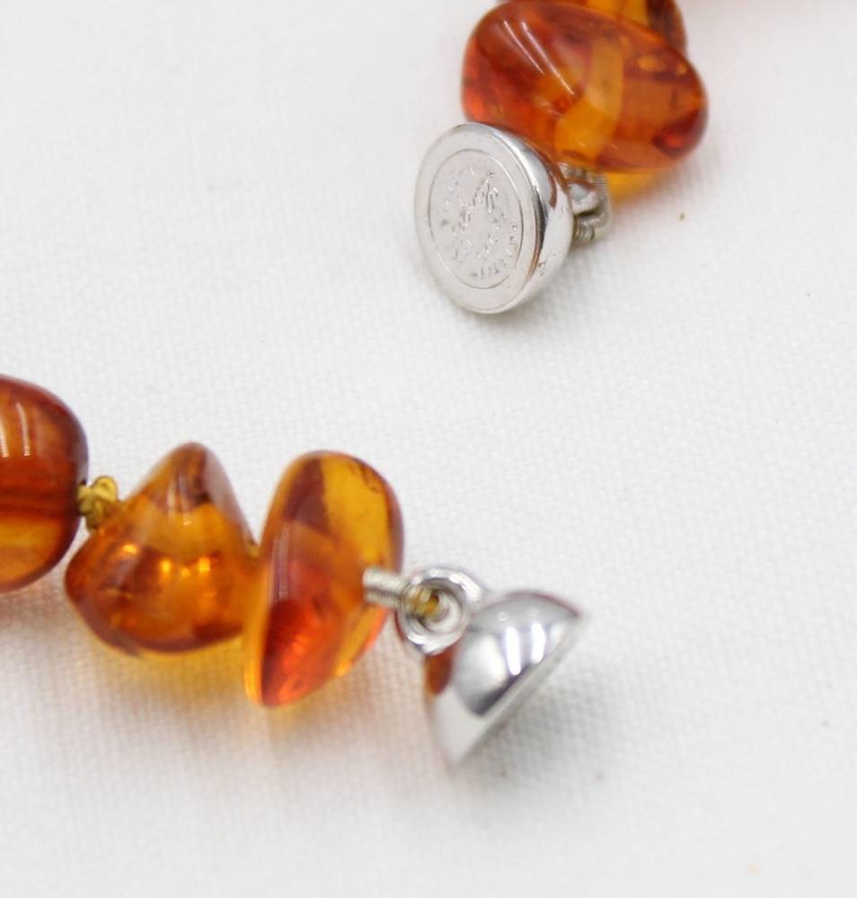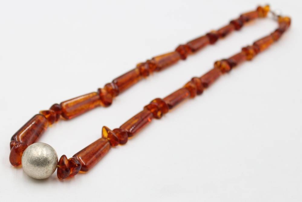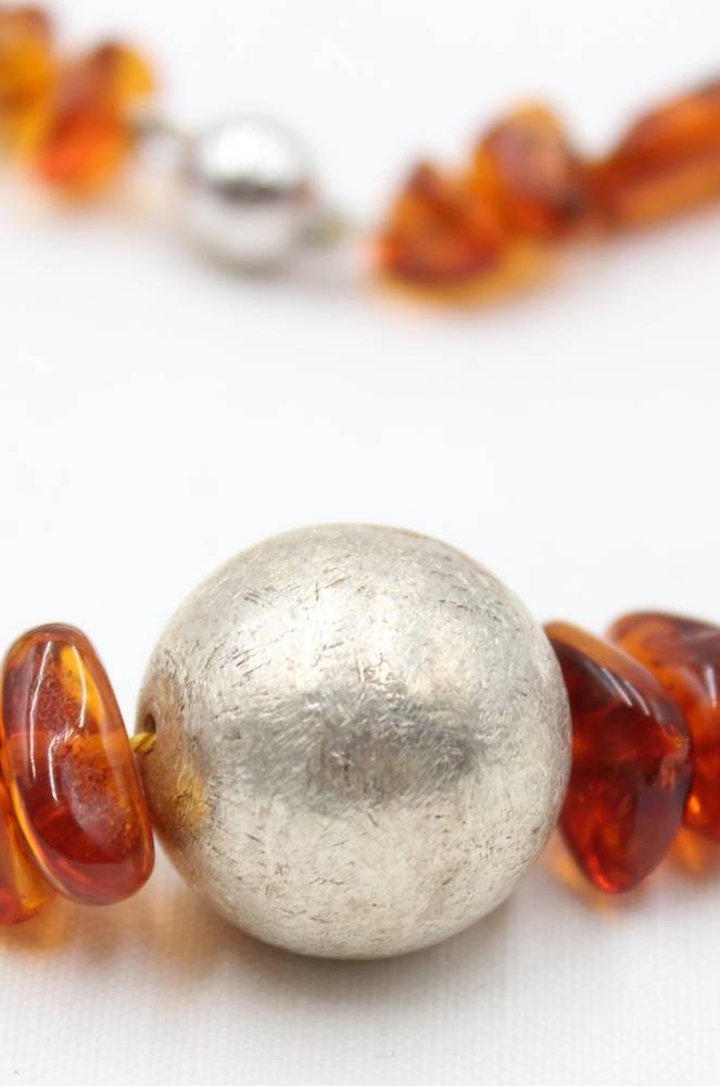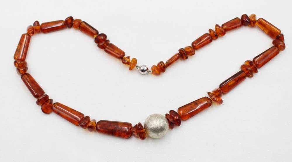 Halskette, geklärter Bernstein, 925er Magentschließe, silberfarbene Zierkugel, ca. L-57cm, zus. 37,5gr. [1]