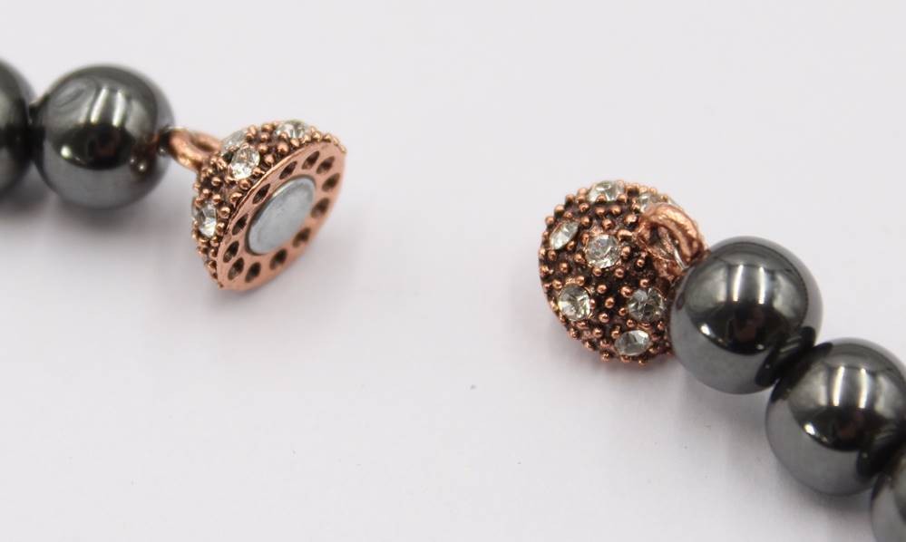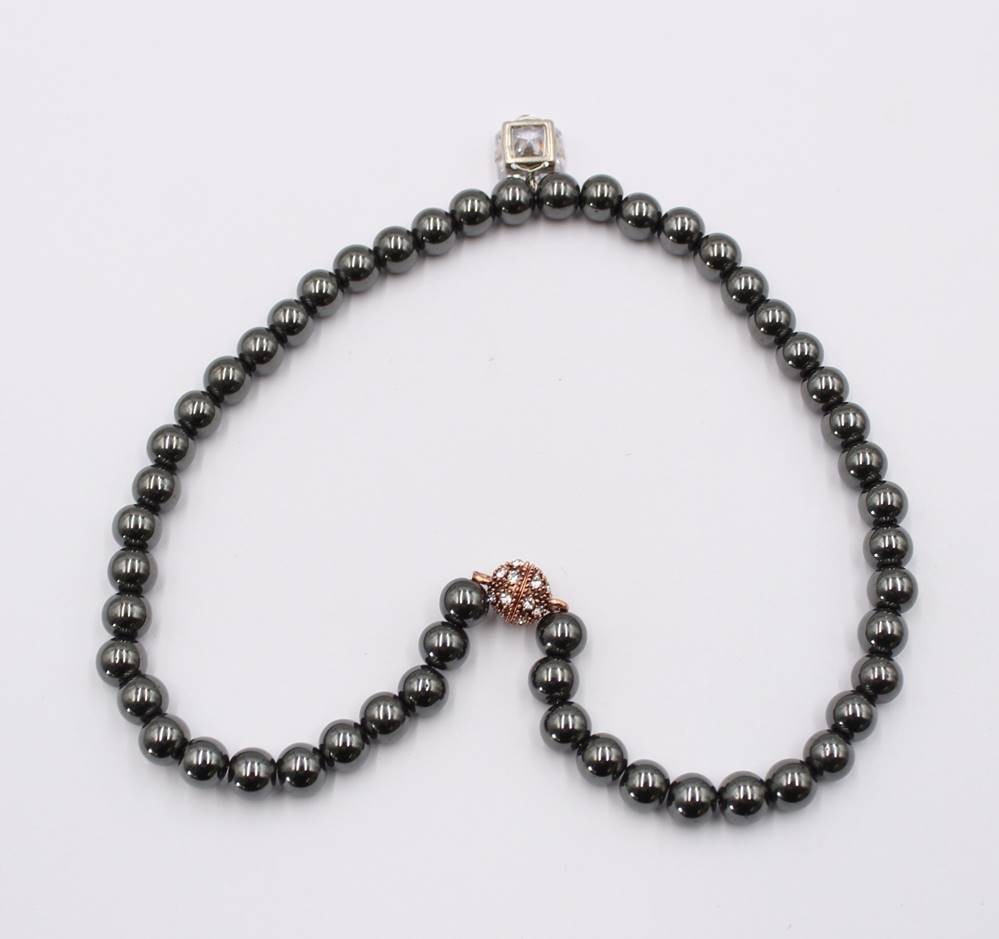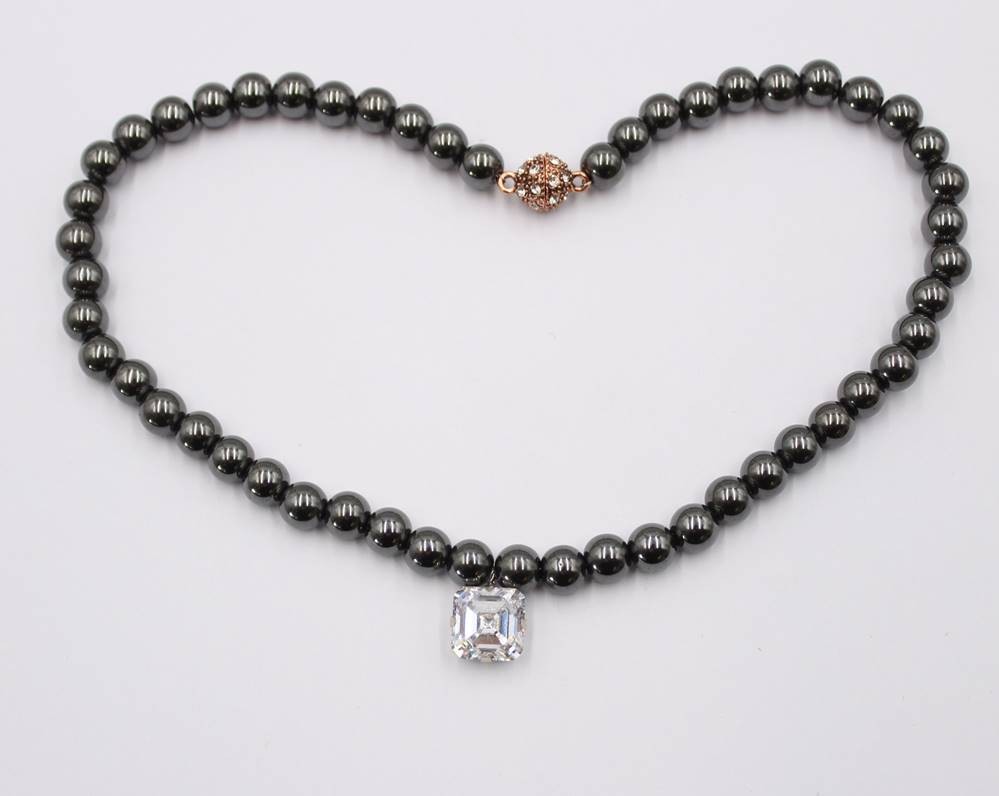 Halskette, Hämatit mit Zirkon-Anhänger, Magnetschließe, ca. L-40cm [1]