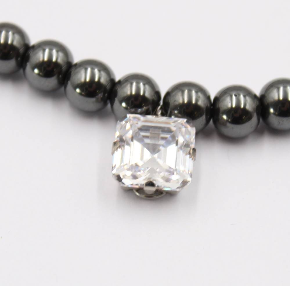 Halskette, Hämatit mit Zirkon-Anhänger, Magnetschließe, ca. L-40cm