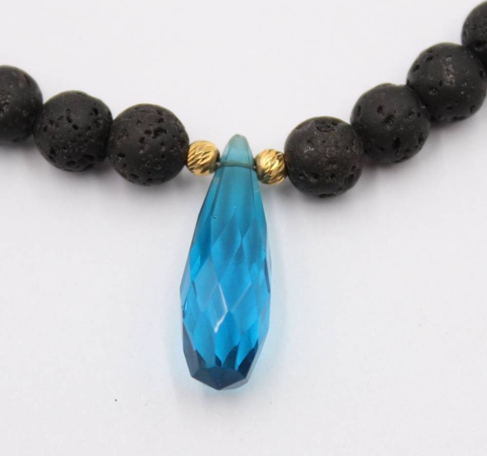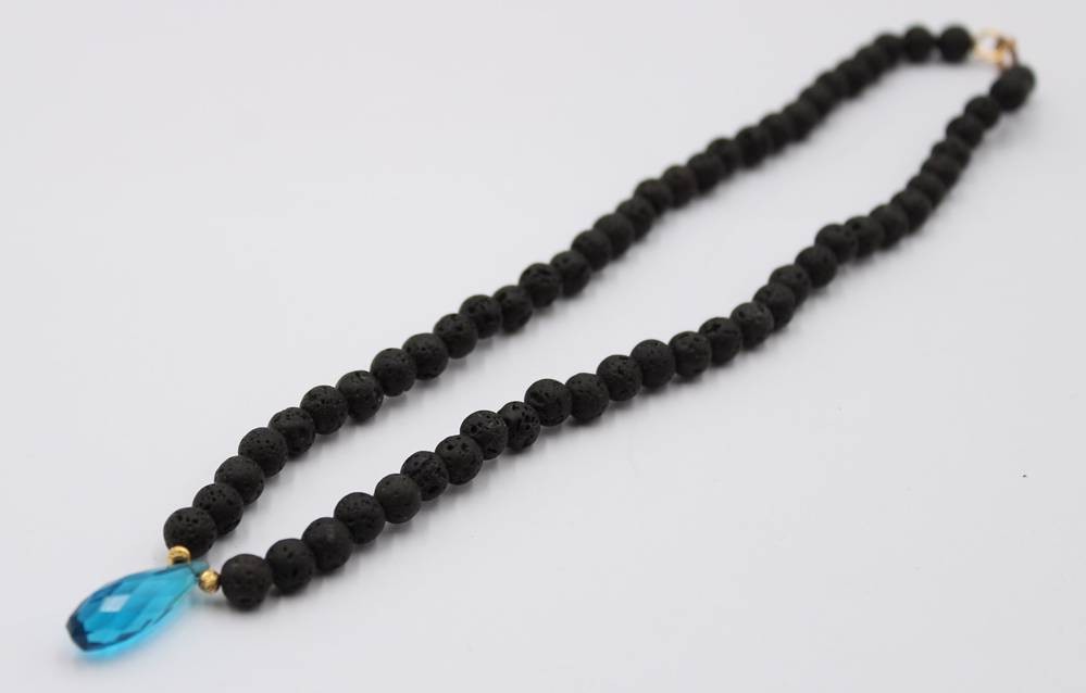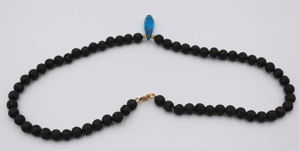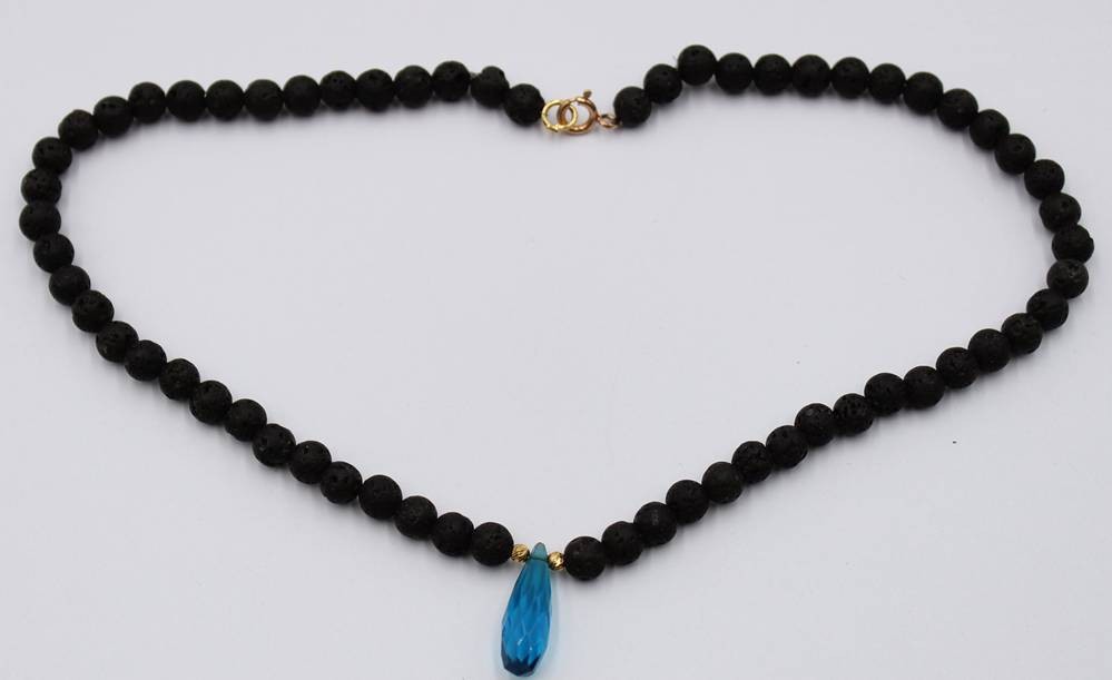 Halskette, Lava und wohl Topas, Silberschließe, ca. L-40cm [1]