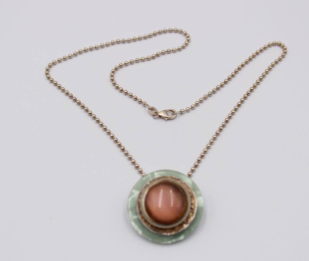 Halskette mit Anhänger, 925er Silber, Schmucksteine?, ca. L-41cm, Anh- D-2,8cm [1]