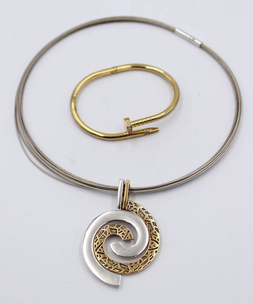 Halskette mit Anhänger dies wohl Pierre Lang, sowie goldfarbenes Armband, ca. Anh. L-5,5cm [1]