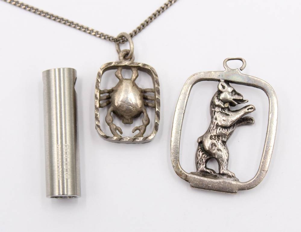 Halskette mit Anhänger, einzelner Anhänger, je Silber sowie Ketteflyer aus Edelstahl, Silber ca. 12,6gr., Kette L-45cm