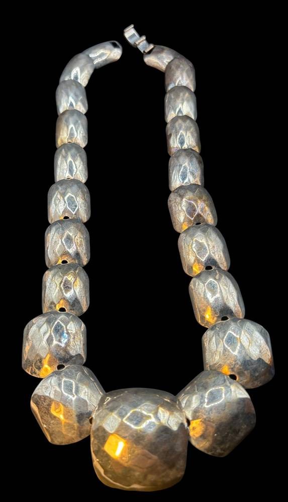 Halskette mit Hammerschlag-Dekor, versilbert, L-45 cm, 66,6 gr [1]