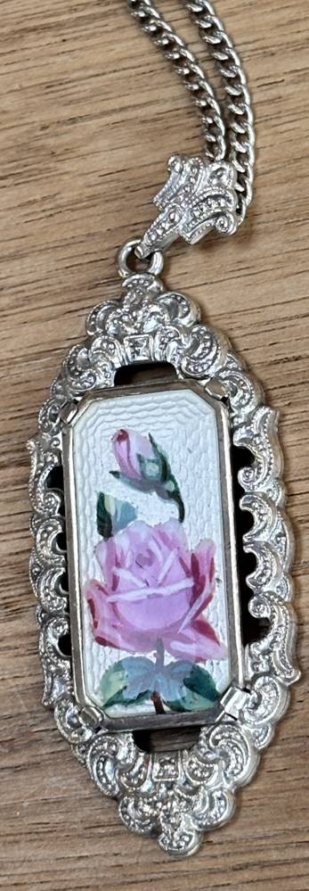 Halskette mit tw. emaillierten Anhänger, Silber-935-, Kette l-80 cm, Anhänger 6cm, 28,8 gr [1]