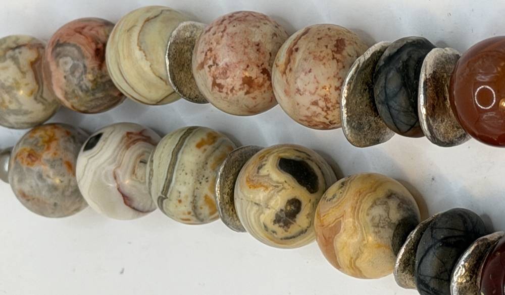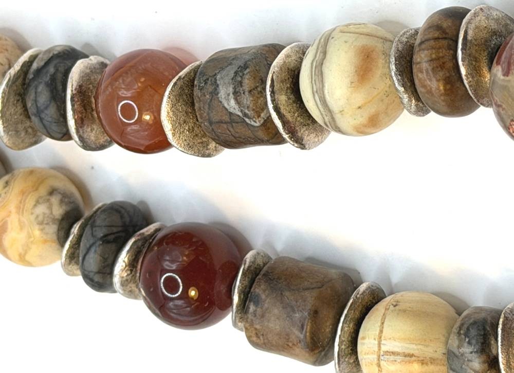 Halskette mit verschiedenen polierten Steinen wie Achat, Jaspis etc. und einer Schaumkoralle-Kugel, ca. 45 cm, ca. 145 gr [1]