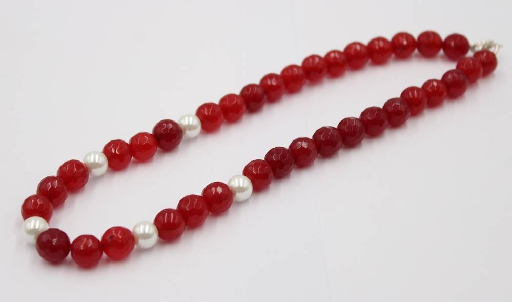 Halskette, rote Steine und Muschelkern-Perlen, ca. L-38cm [1]