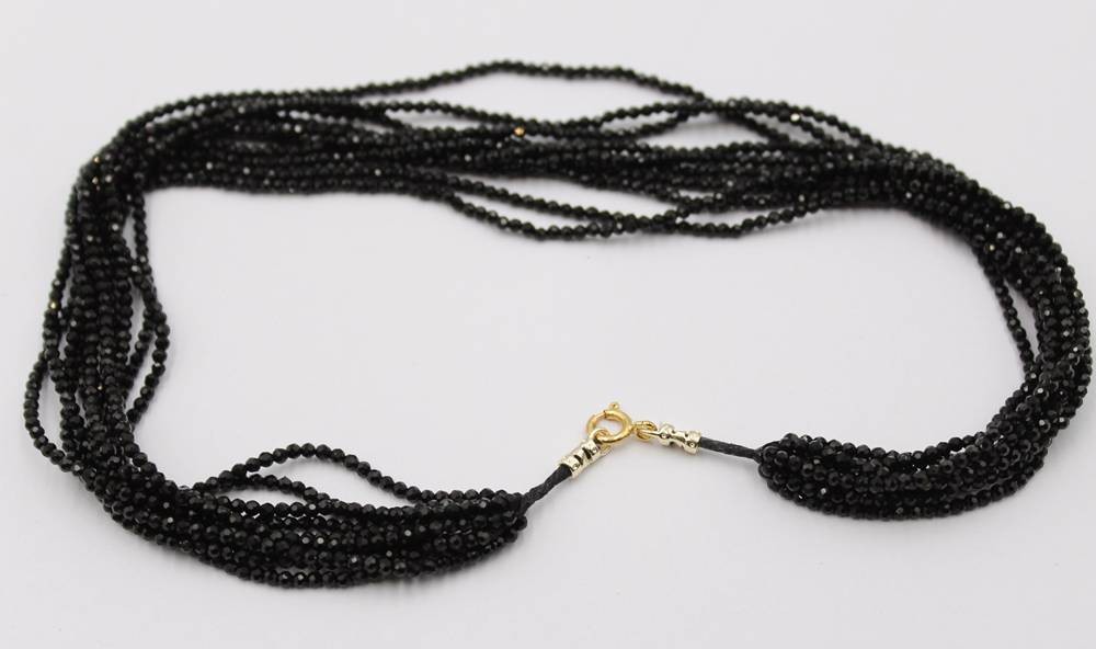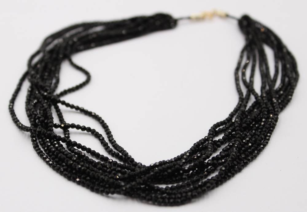 Halskette, schwarze Steine, mehrreihig, ca. L-38cm [1]