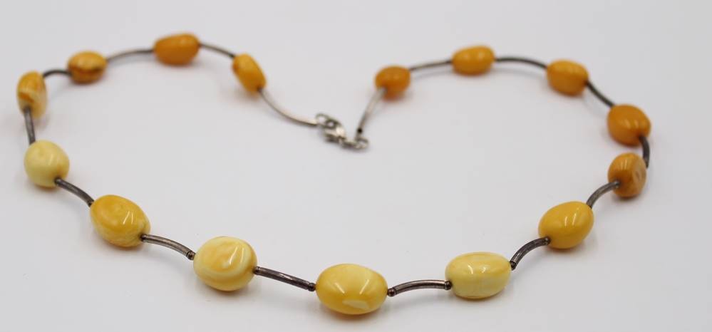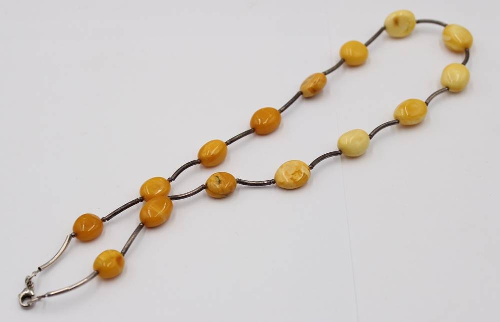 Halskette, Silber und Bernstein, ca. L-50cm, 17,5gr. [1]