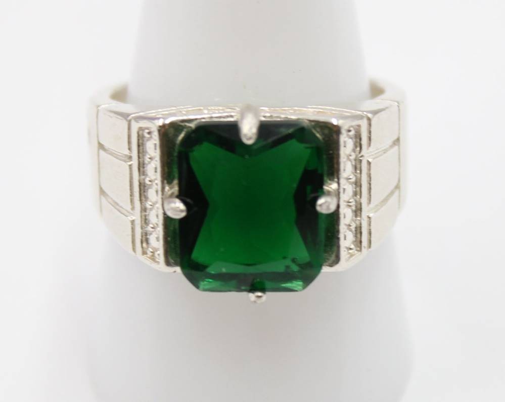 Herrenring, Silber, grüner Stein, ca. 7,5gr, RG 62 [1]