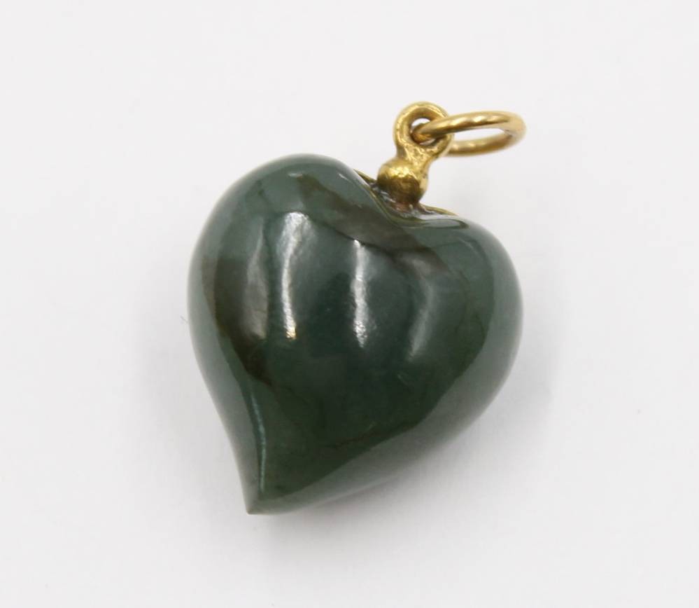 Herzanhänger, mit 18 K Goldmontur, wohl Nephrit -Jade, ca. L-2,5cm [1]