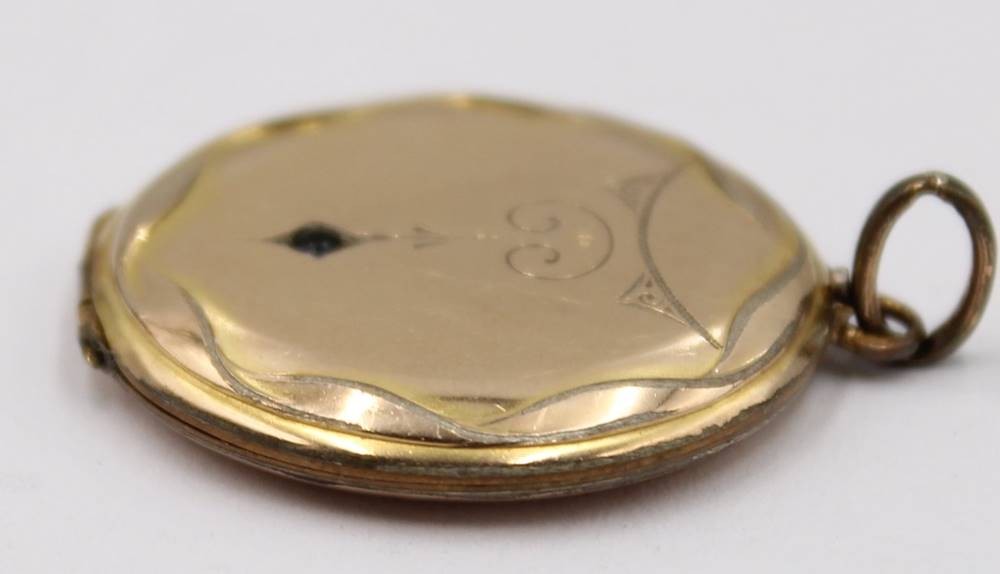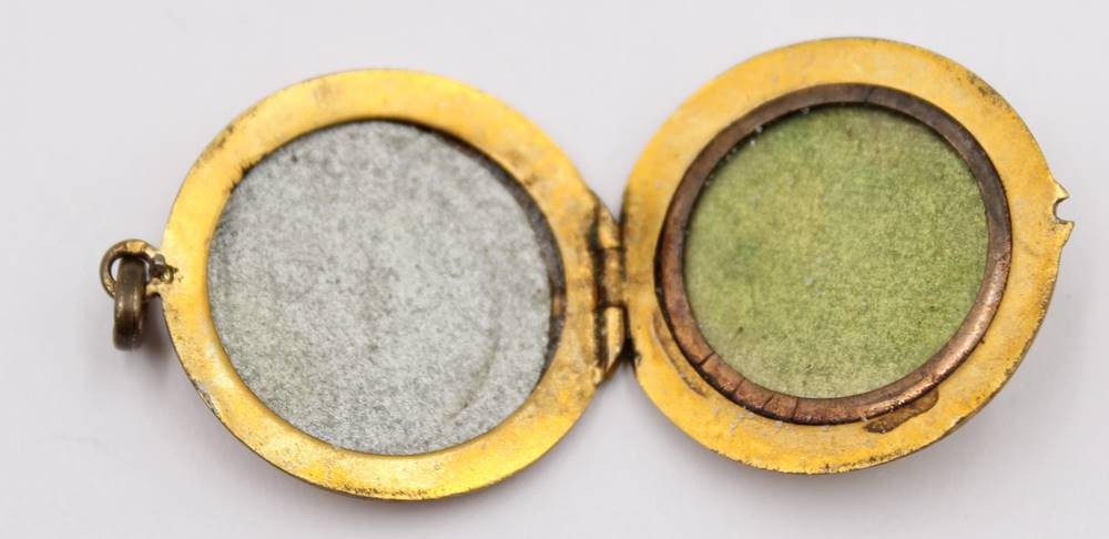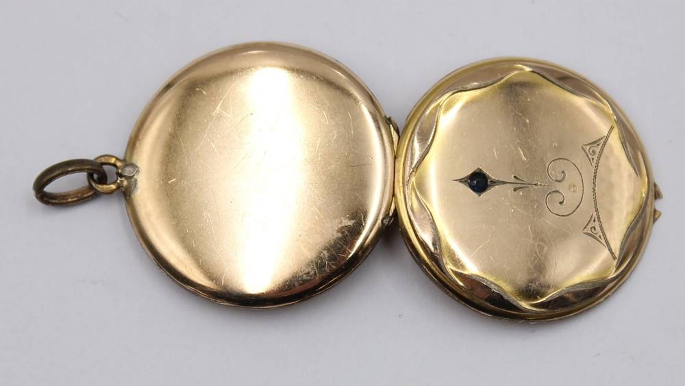 Jugendstil Foto Anhänger mit einem blauen Stein,vergoldet, D. 2,7 cm [1]