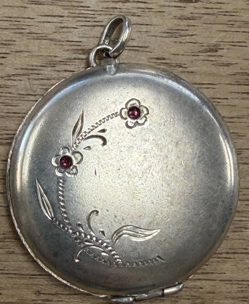Jugendstil-Medaillon, Silber mit 2 kl. Rubinen, D-3 cm, 10,7 gr [1]
