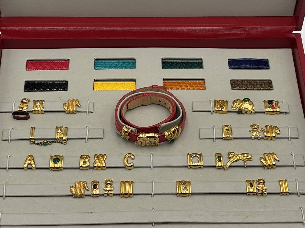 Kasten mit Double Armschmuck, div. bunte Armbänder "Cabochon" zum Wechseln? Kasten 34x24 cm, wohl nicht vollständig [1]