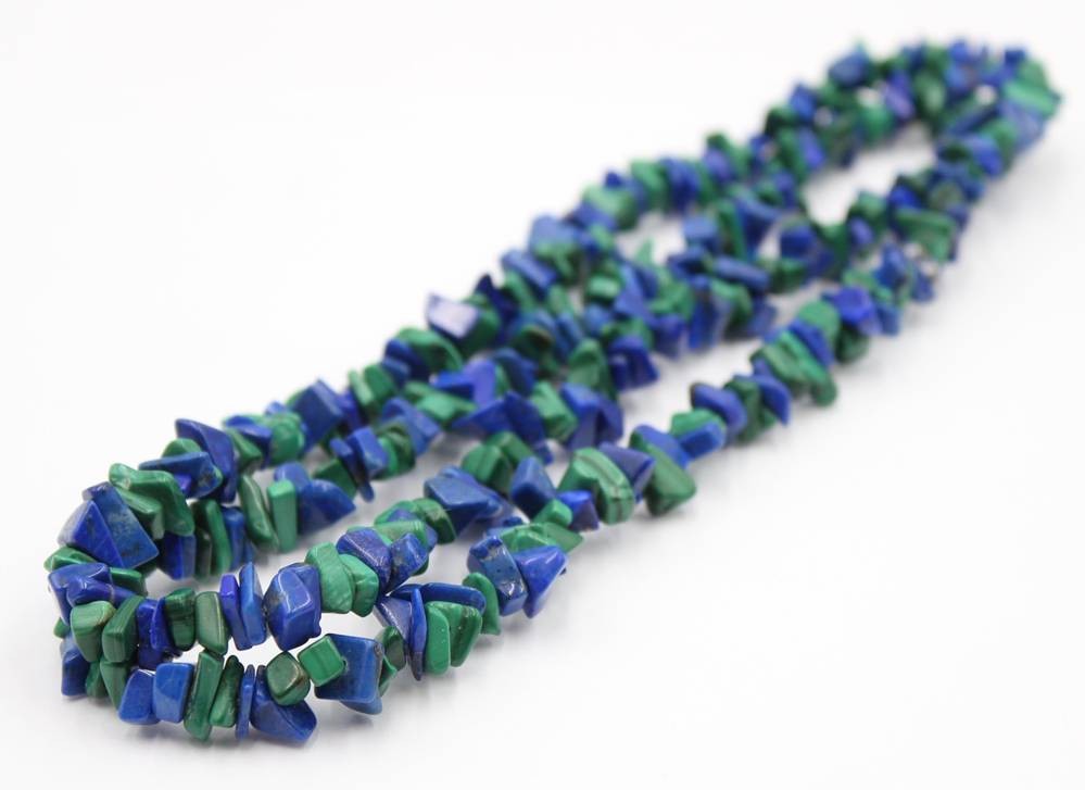 Kette aus Malachit und Lapislazuli- Splitter endlos gearbeitet .