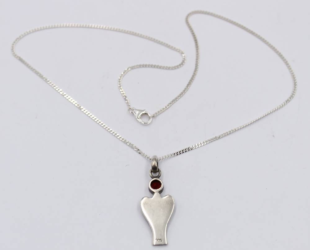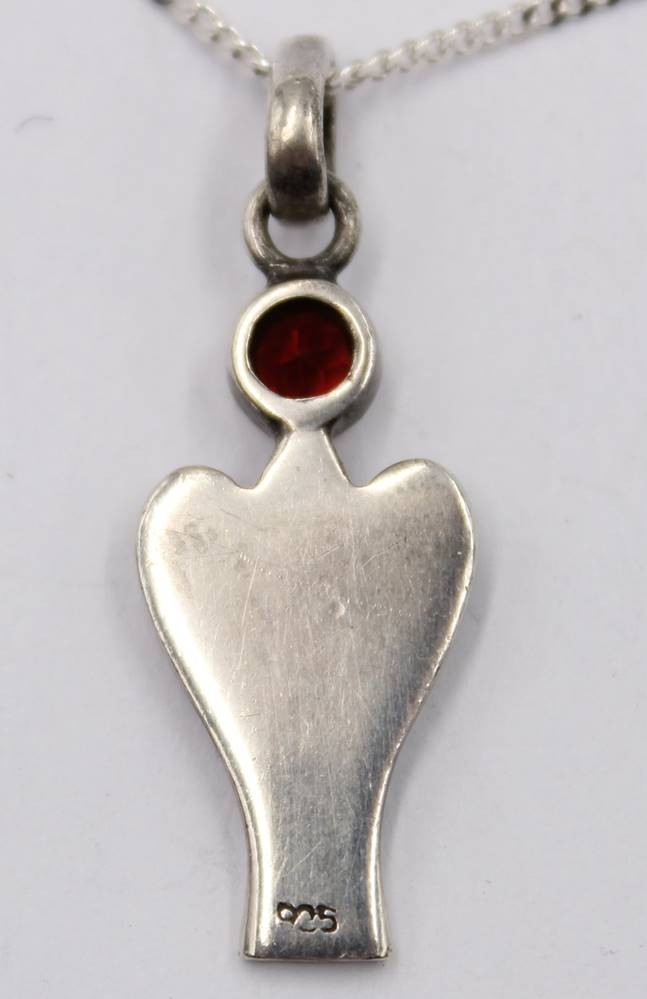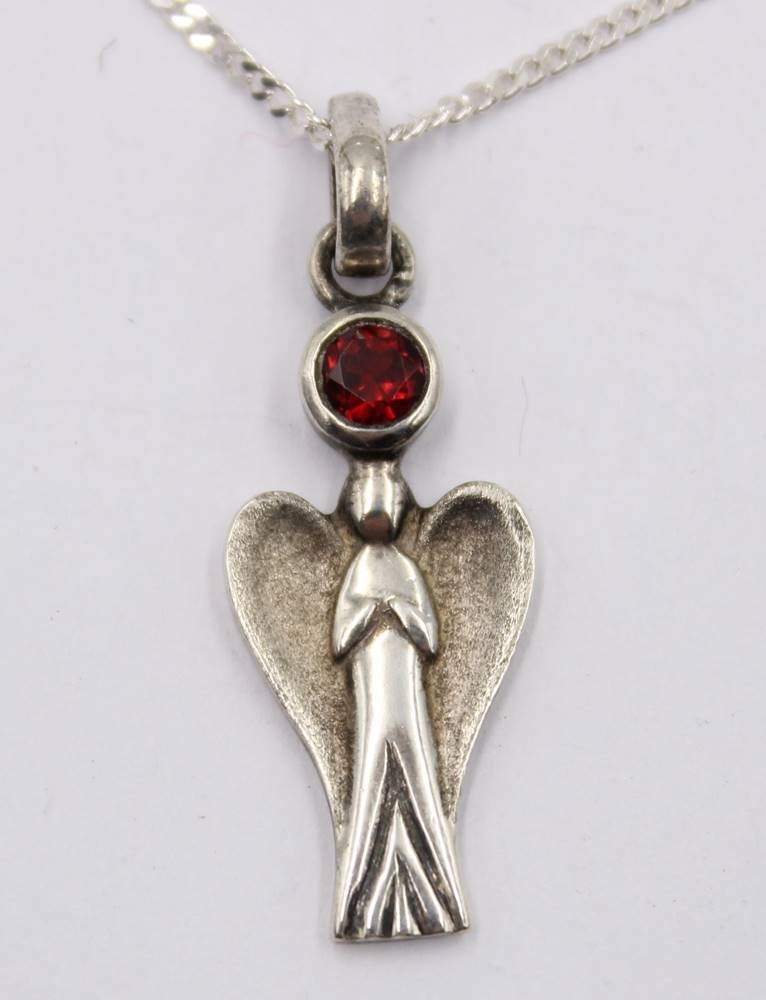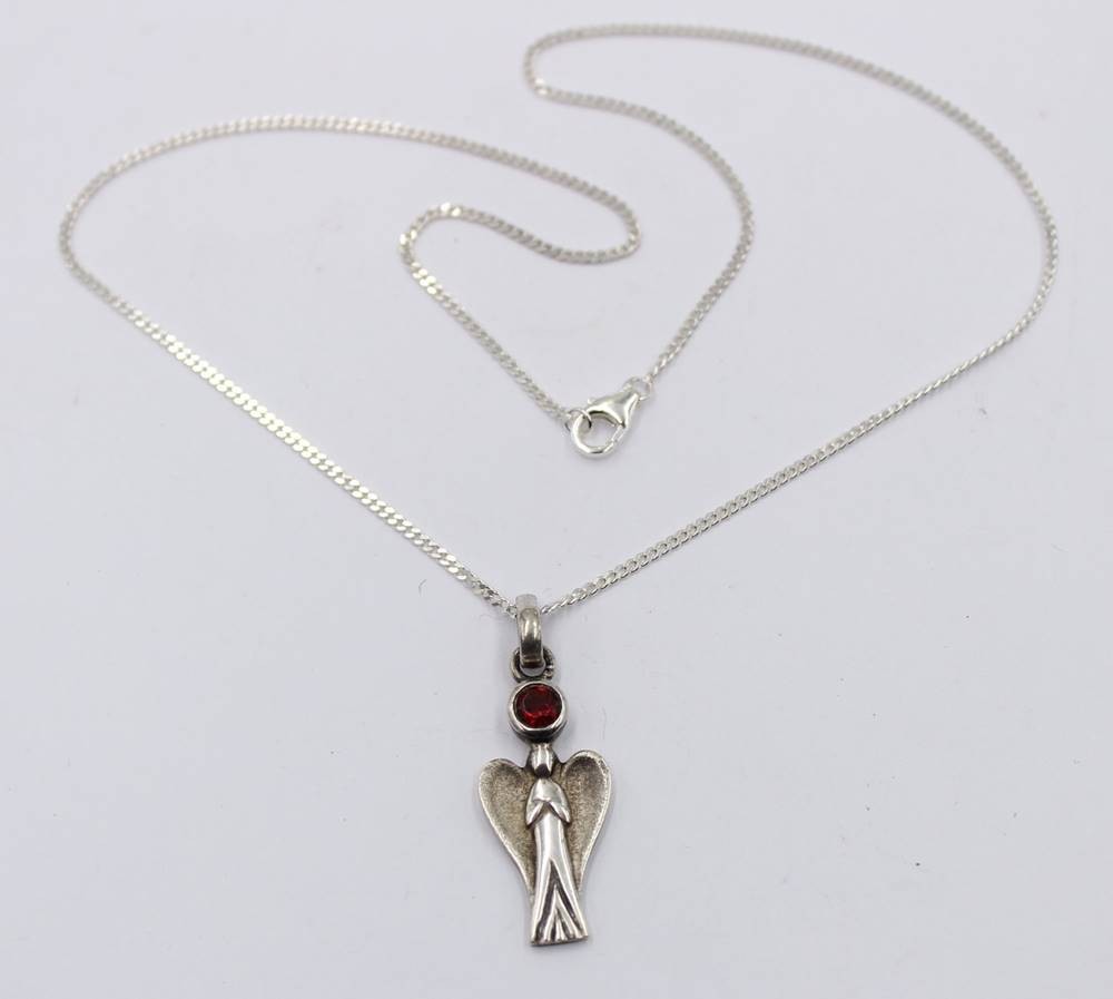 Kette mit Anhänger, Engel mit wohl Granat, 925er Silber, 4,5gr., L-38cm Anh. L-3,5cm [1]