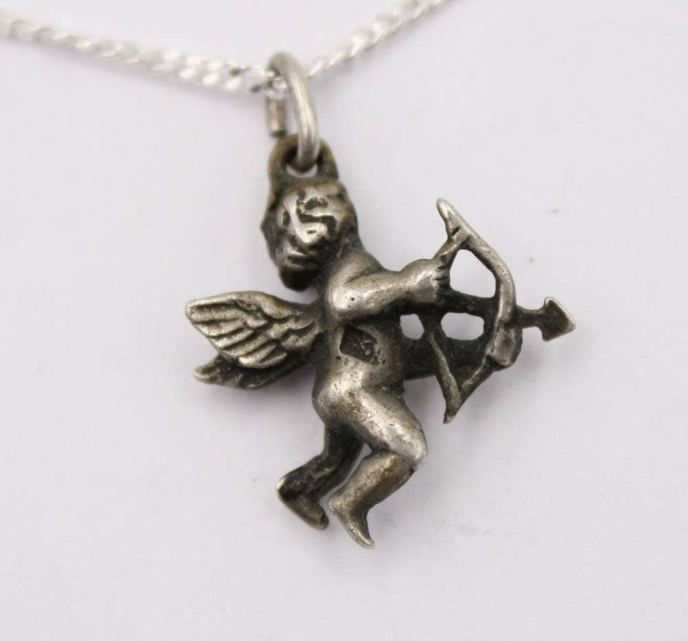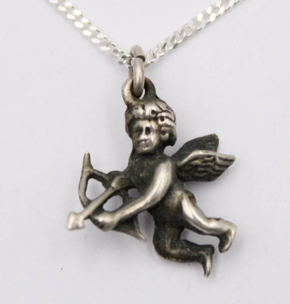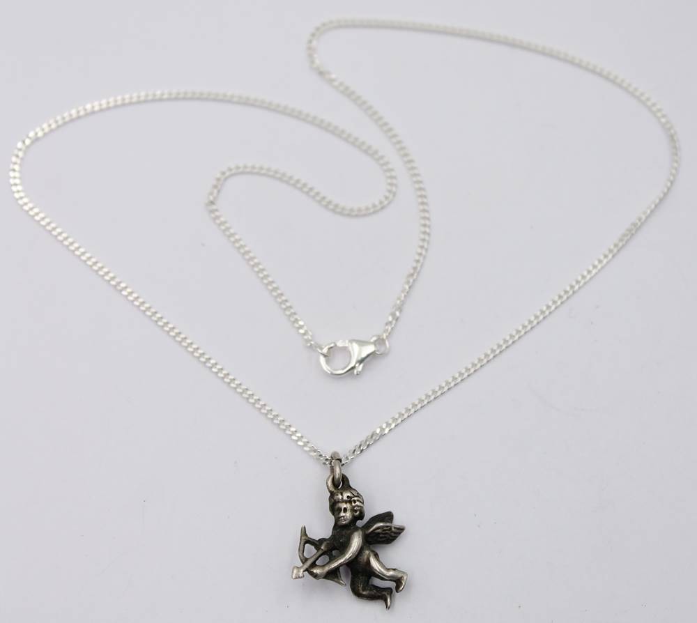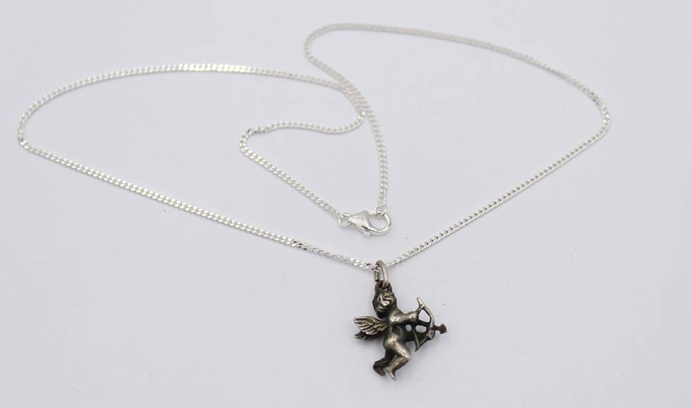 kl. Amor-Anhänger an Kette, Silber, zus. 4,2gr., ca. L-40cm Anh. 1,5cm [1]