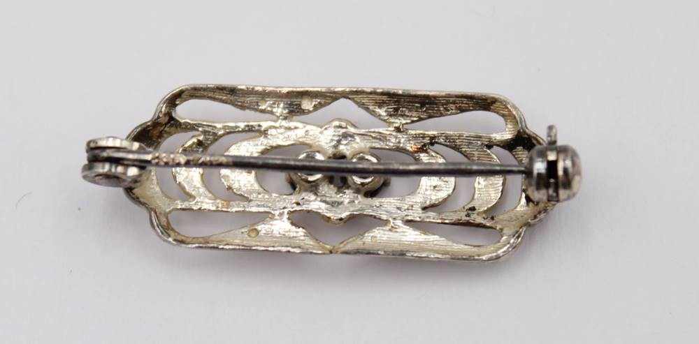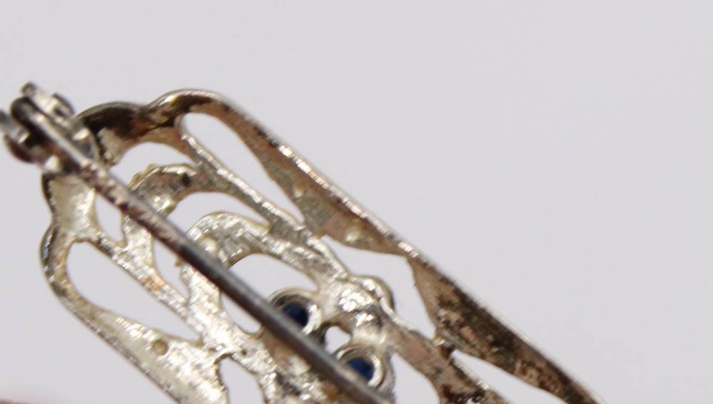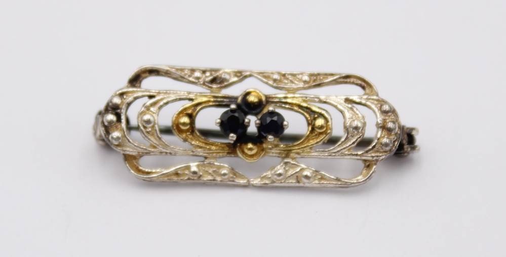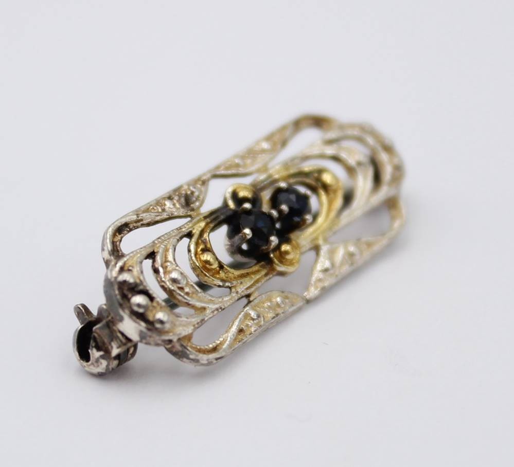 kl. Brosche, 835er Silber, mit Saphiren, teilw. vergoldet, 1,9gr., L-2,5cm [1]