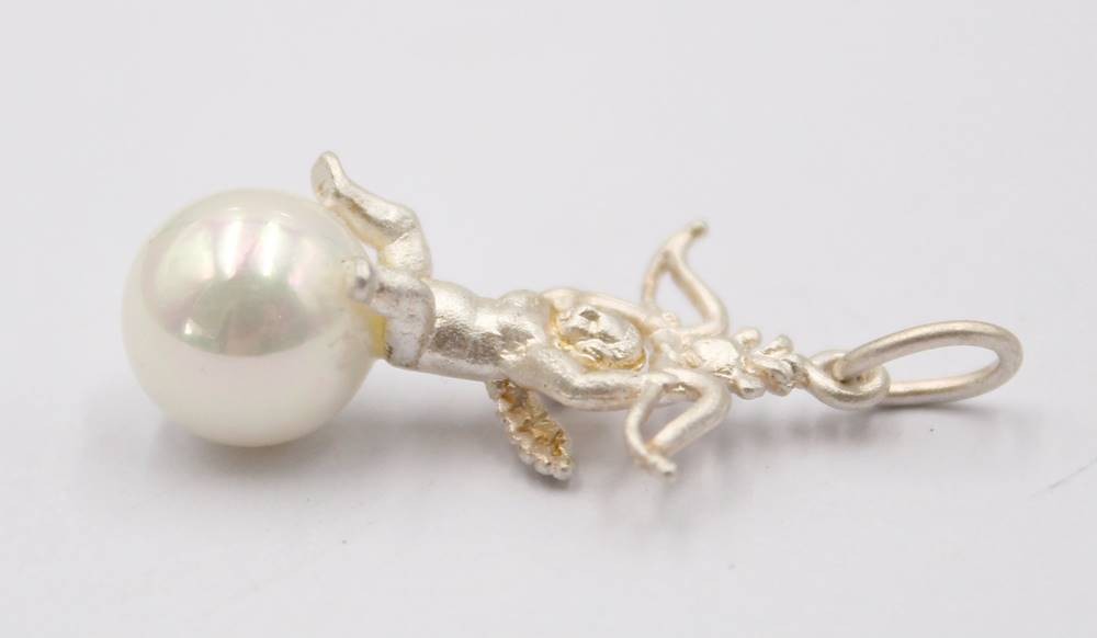 kl. figürl. 925er Silberanhänger, Putto, Muschelkernperle, 1,9gr., L-2,5cm [1]