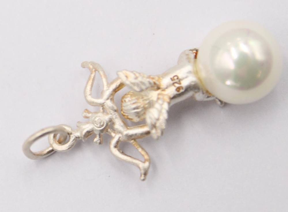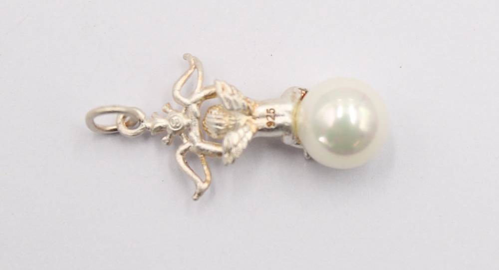 kl. figürl. 925er Silberanhänger, Putto, Muschelkernperle, 1,9gr., L-2,5cm