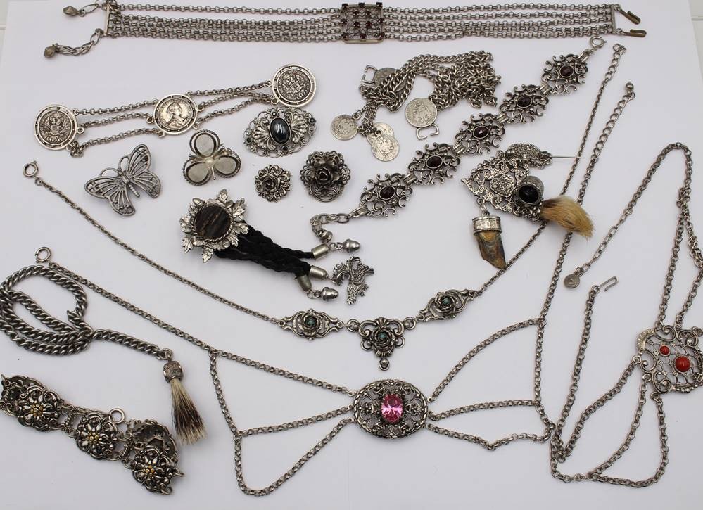 kl. Schmuckkasten, befüllt mit Modeschmuck, Kasten H-9,5cm B-15,5cm T-9,5cm [1]
