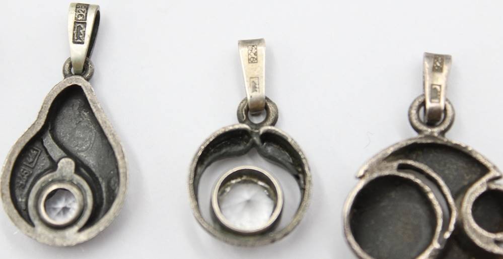 kl. Silber-Konvolut, Karl Laine, je mit klarem Stein, zus. 14,2gr., RG 50, Anh. ca. L-2,8cm [1]