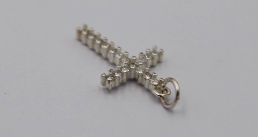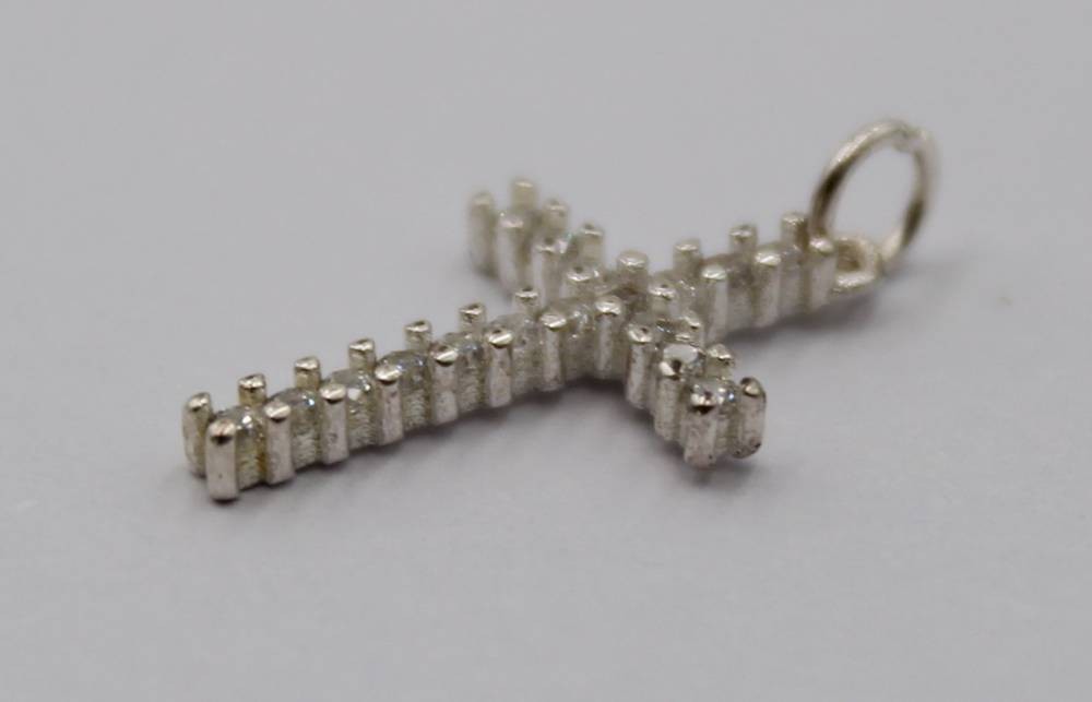 kl. Silber-Kreuzanhänger, klare Steine, L-2cm, 0,5gr. [1]