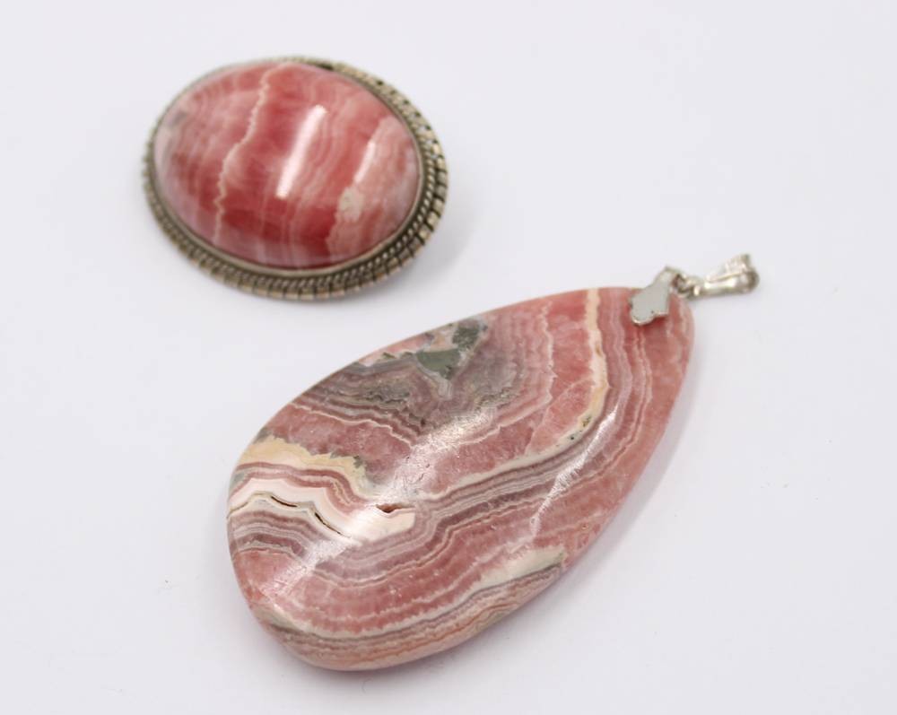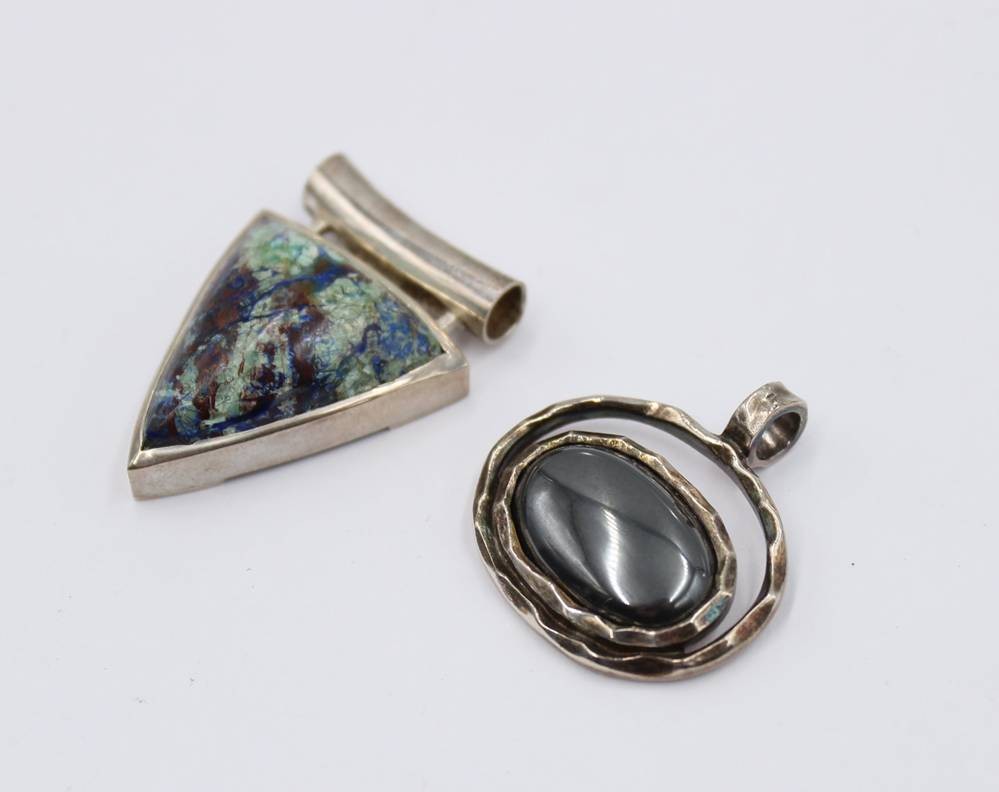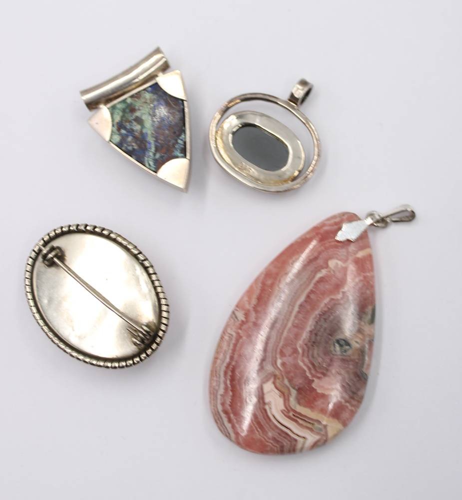 Konvolut, 3x Anhänger mit Silbermontur sowie 1x Brosche, ca. Anh. L-7cm [1]